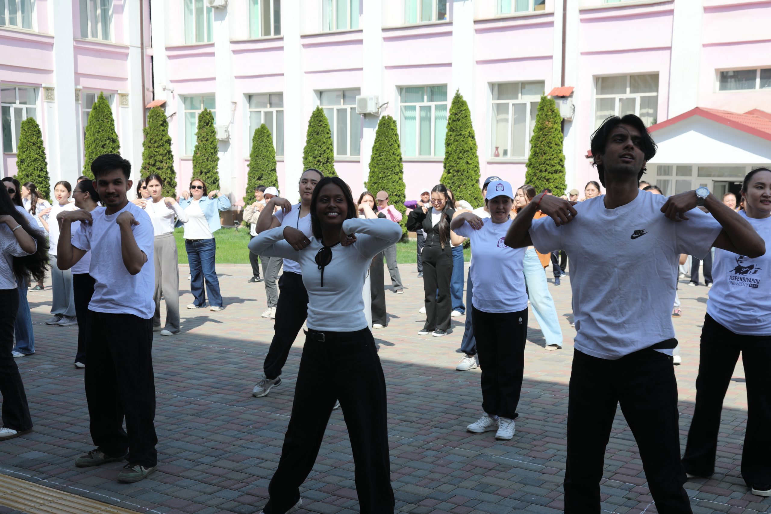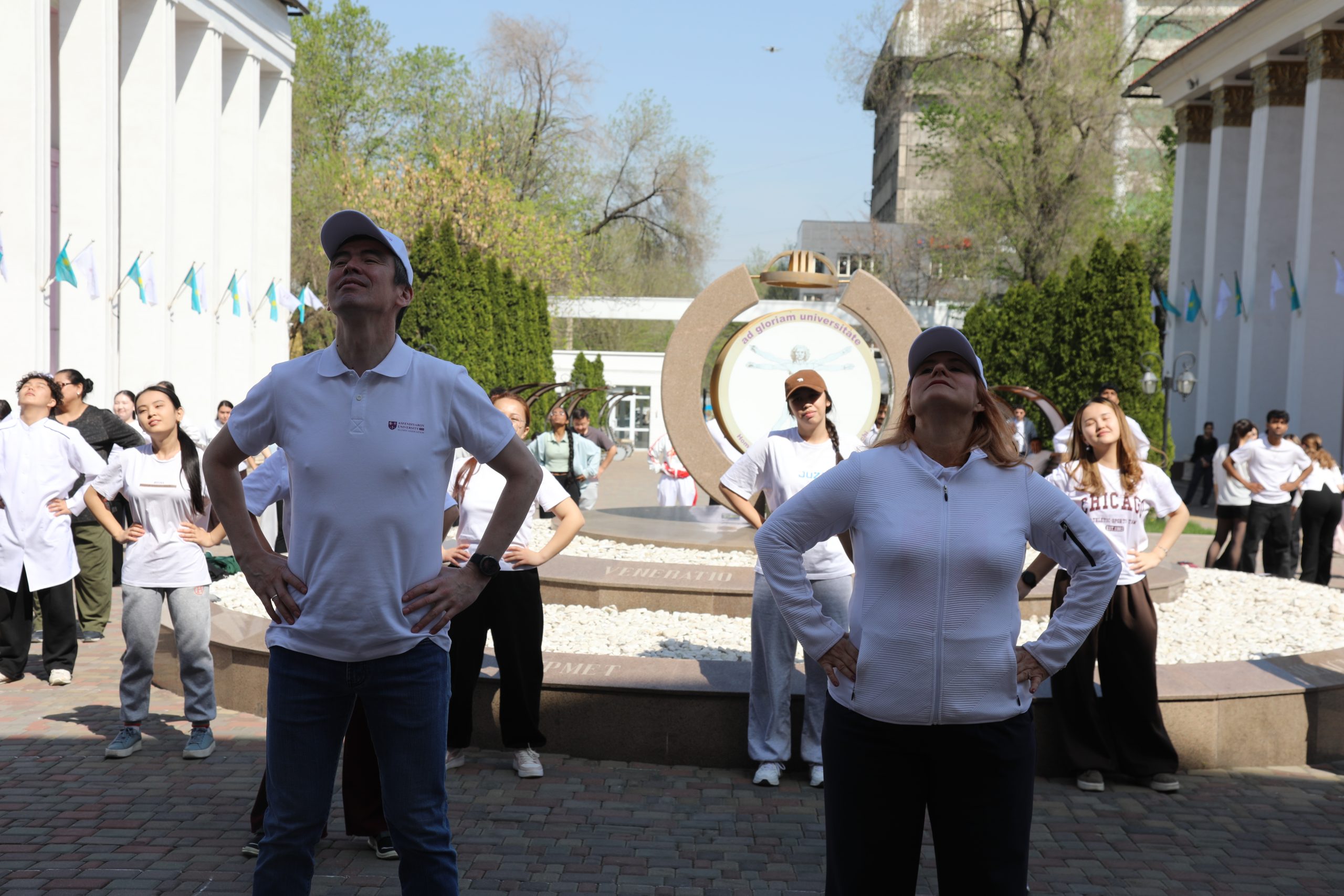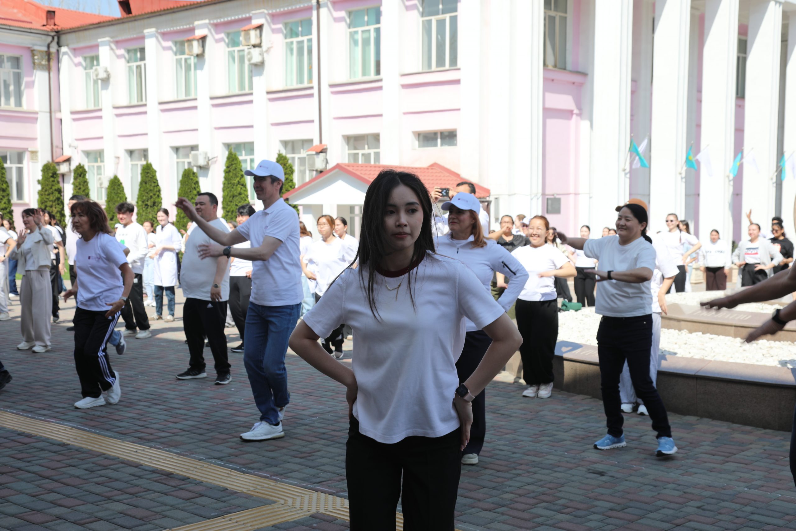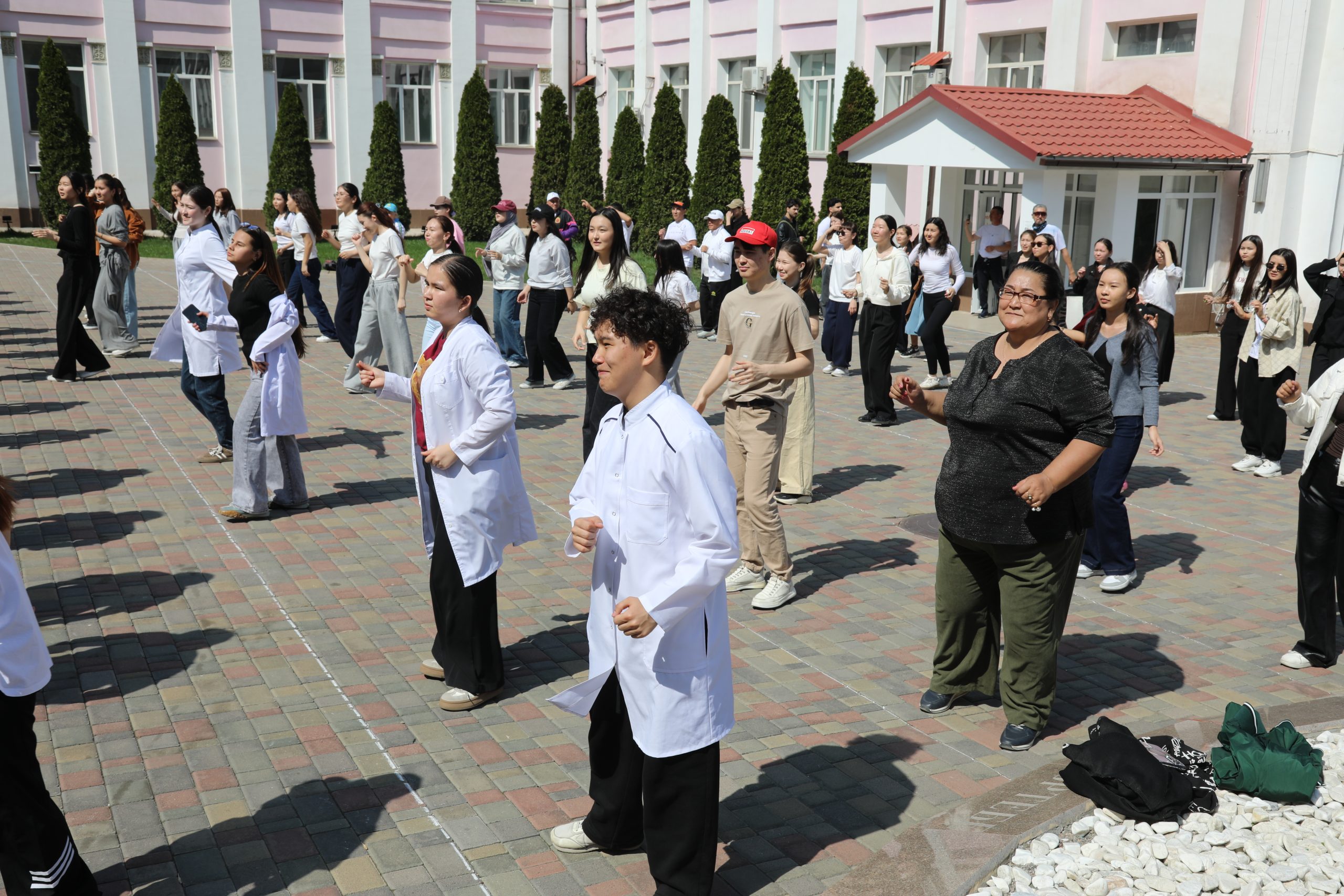 В Казахском национальном медицинском университете имени С. Д. Асфендиярова 7 апреля состоялся масштабный флешмоб, приуроченный ко Всемирному дню здоровья. В акции приняли участие студенты, преподаватели, сотрудники университета, а также ректор КазНМУ Марат Шоранов и руководитель Европейского центра ВОЗ по первичной медико-санитарной помощи в Алматы д-р Мелитта Якоб.
