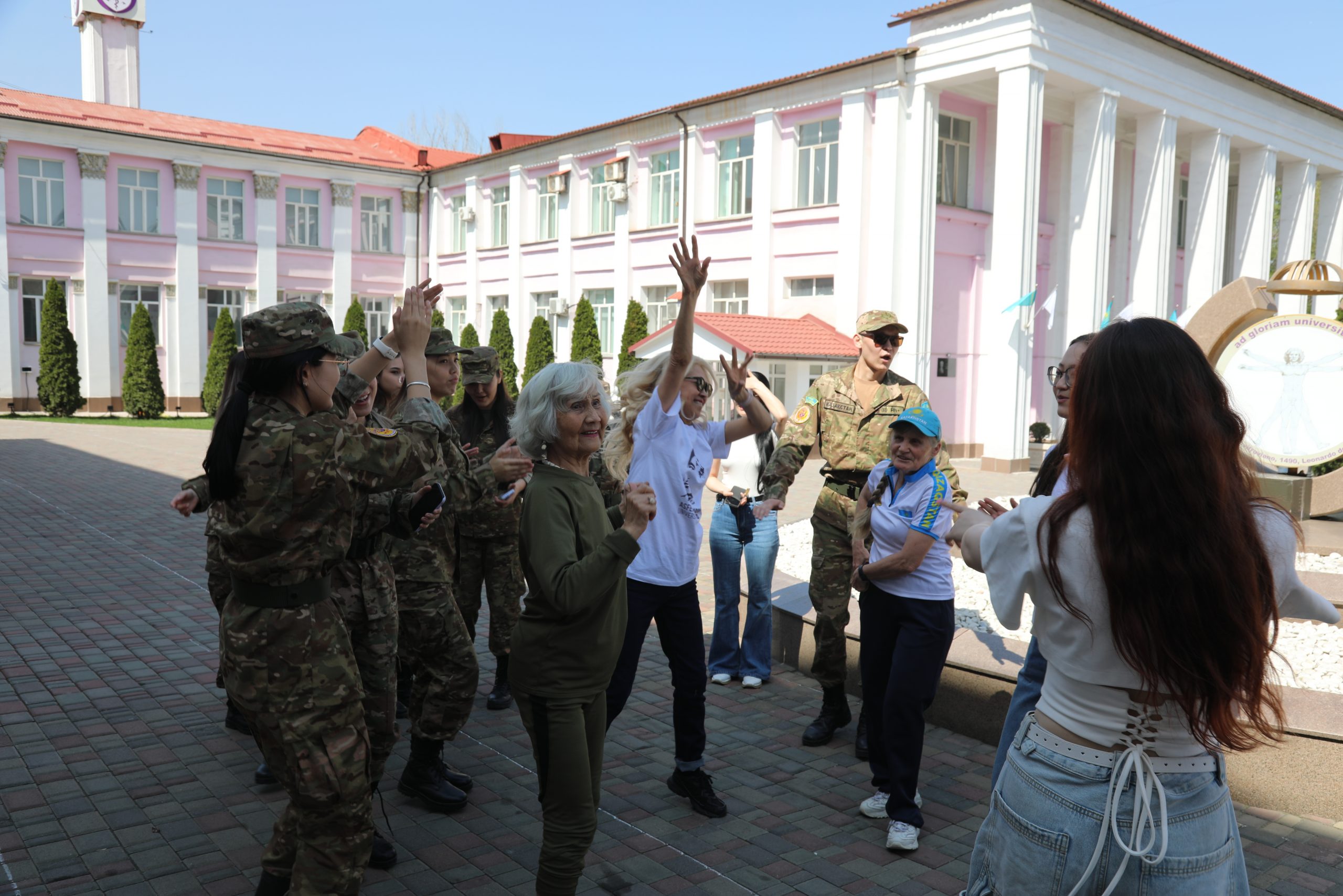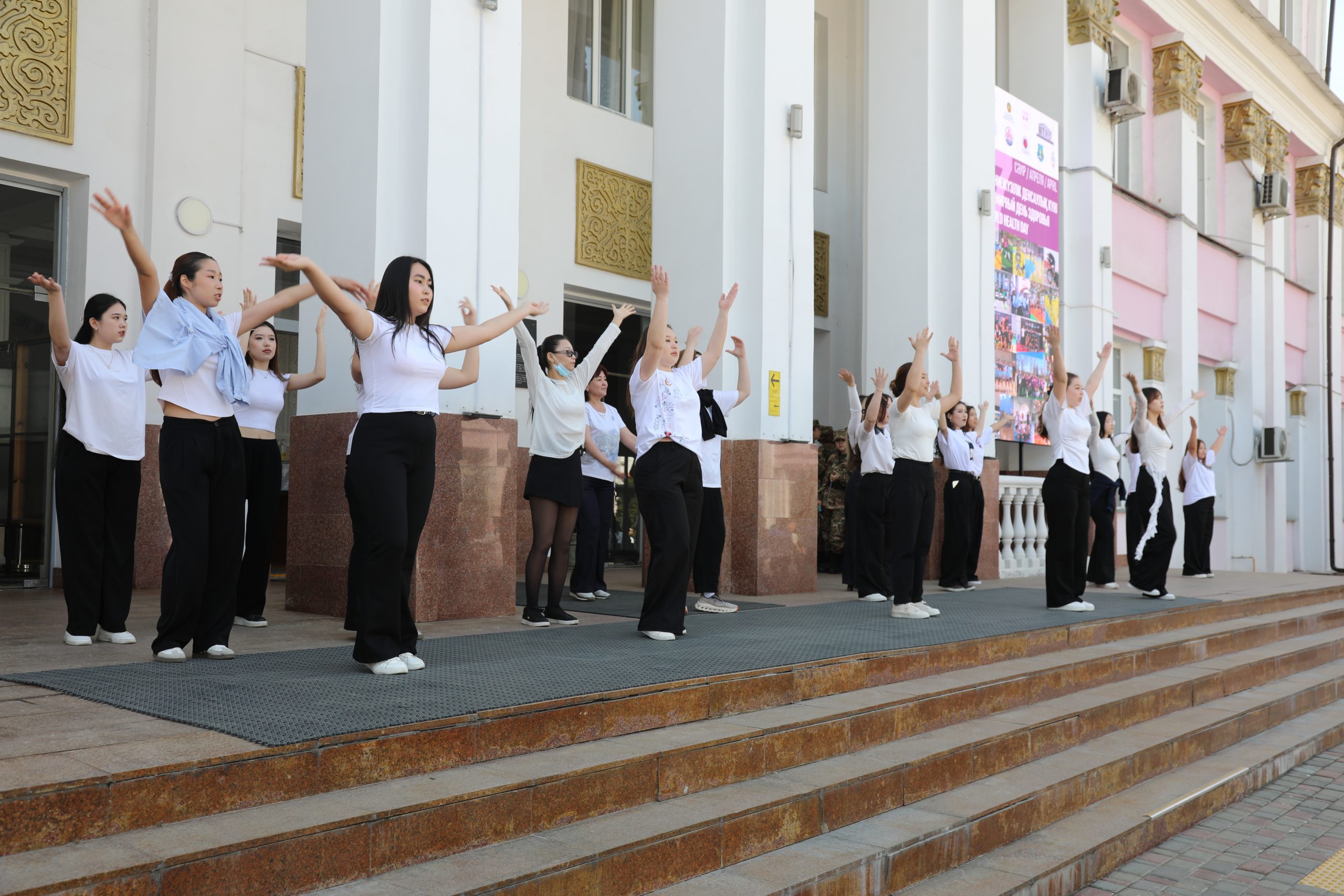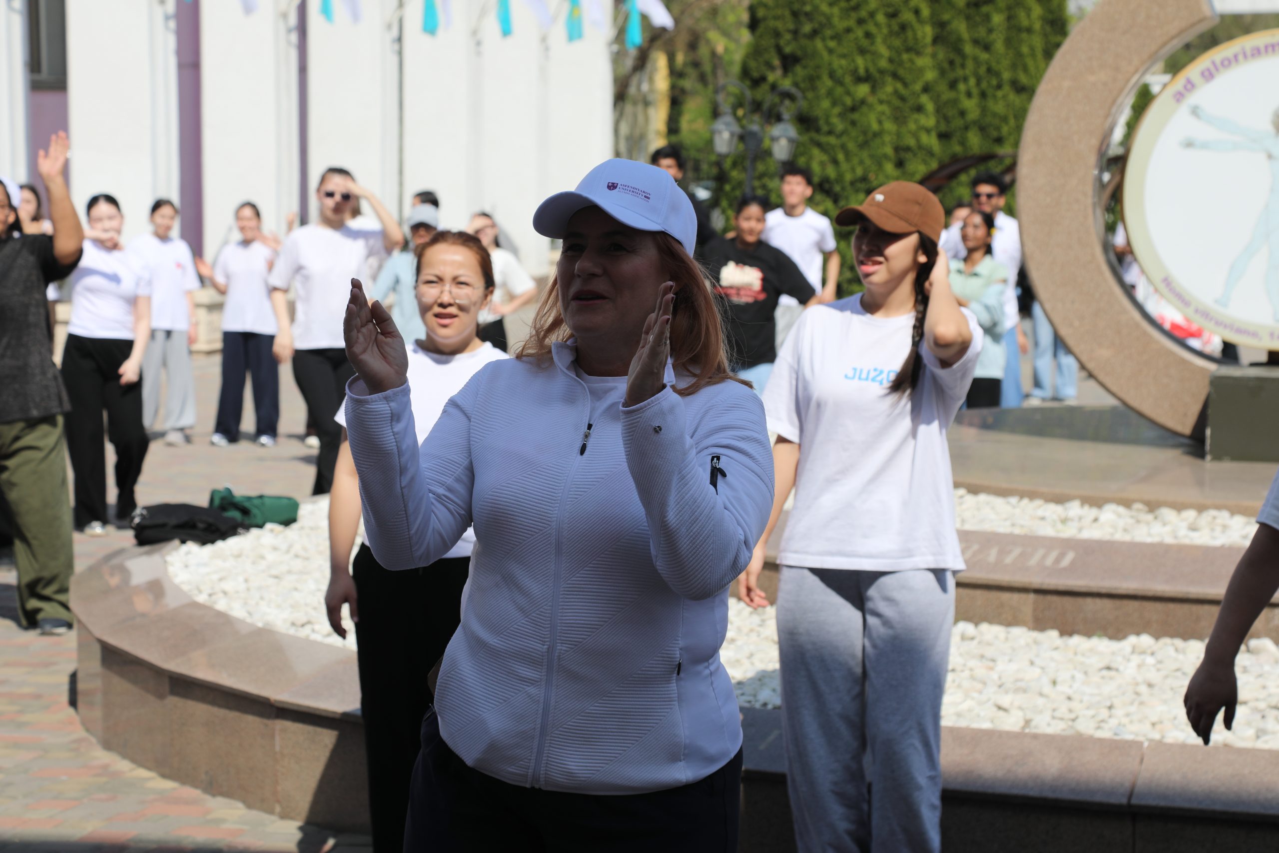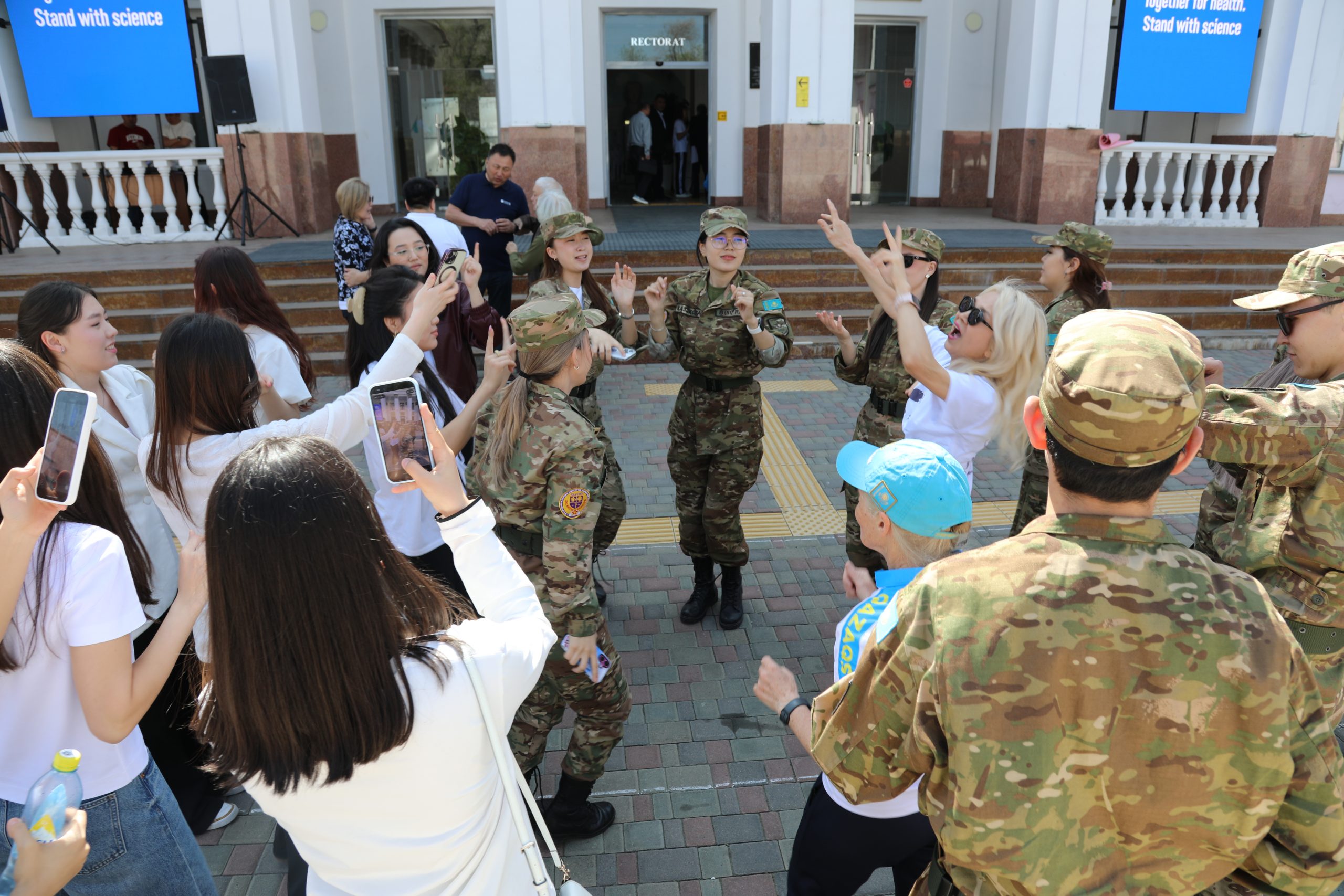 В Казахском национальном медицинском университете имени С. Д. Асфендиярова 7 апреля состоялся масштабный флешмоб, приуроченный ко Всемирному дню здоровья. В акции приняли участие студенты, преподаватели, сотрудники университета, а также ректор КазНМУ Марат Шоранов и руководитель Европейского центра ВОЗ по первичной медико-санитарной помощи в Алматы д-р Мелитта Якоб.