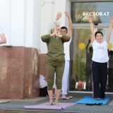 Мероприятие было посвящено вопросам физической активности, профилактики заболеваний и формирования повседневной культуры здоровья. В рамках программы участники присоединились к общей разминке, а йога-тренировку провела доцент КазНМУ, кандидат биологических наук, преподаватель кафедры биохимии с почти 60-летним стажем, действующий инструктор по йоге Сара Саид-Алиевна Ерджанова.