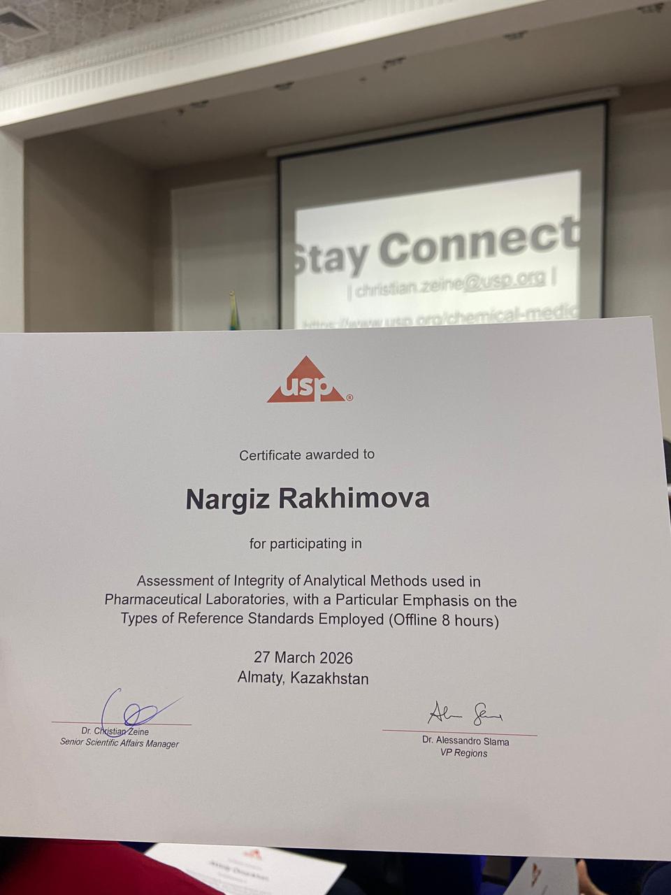Семинар, проведенный на базе Национальный центр экспертизы лекарственных средств и медицинских изделий, объединил специалистов в области контроля качества лекарственных средств. В рамках мероприятия участники под руководством профессора Тулегеновой Ардак Уринбасаровны — специалиста Научно-образовательного фармакопейного центра Центра фармации и фармакологии КазНМУ имени С.Д. Асфендиярова— обсудили современные подходы к валидации аналитических методик, требования к качеству эталонных стандартов, а также их ключевую роль в обеспечении надежности и воспроизводимости результатов лабораторных исследований.