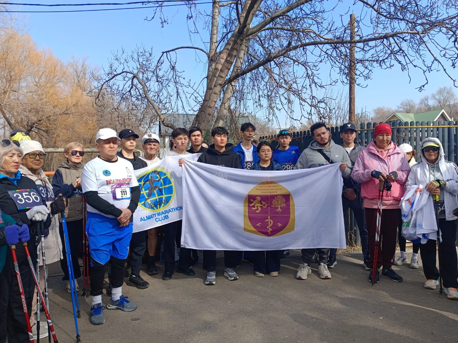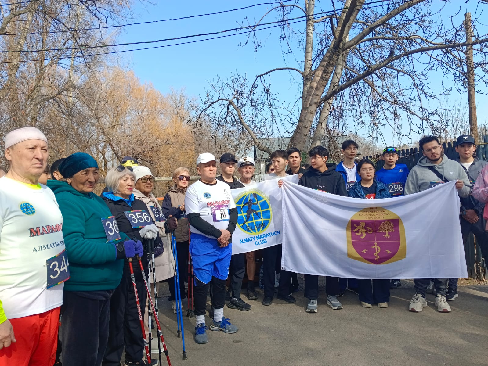 В забеге приняли участие студенты КазНМУ им. С.Д. Асфендиярова совместно с атлетами Алматинского клуба марафонцев. Организаторами мероприятия также выступил Центр физического здоровья университета.