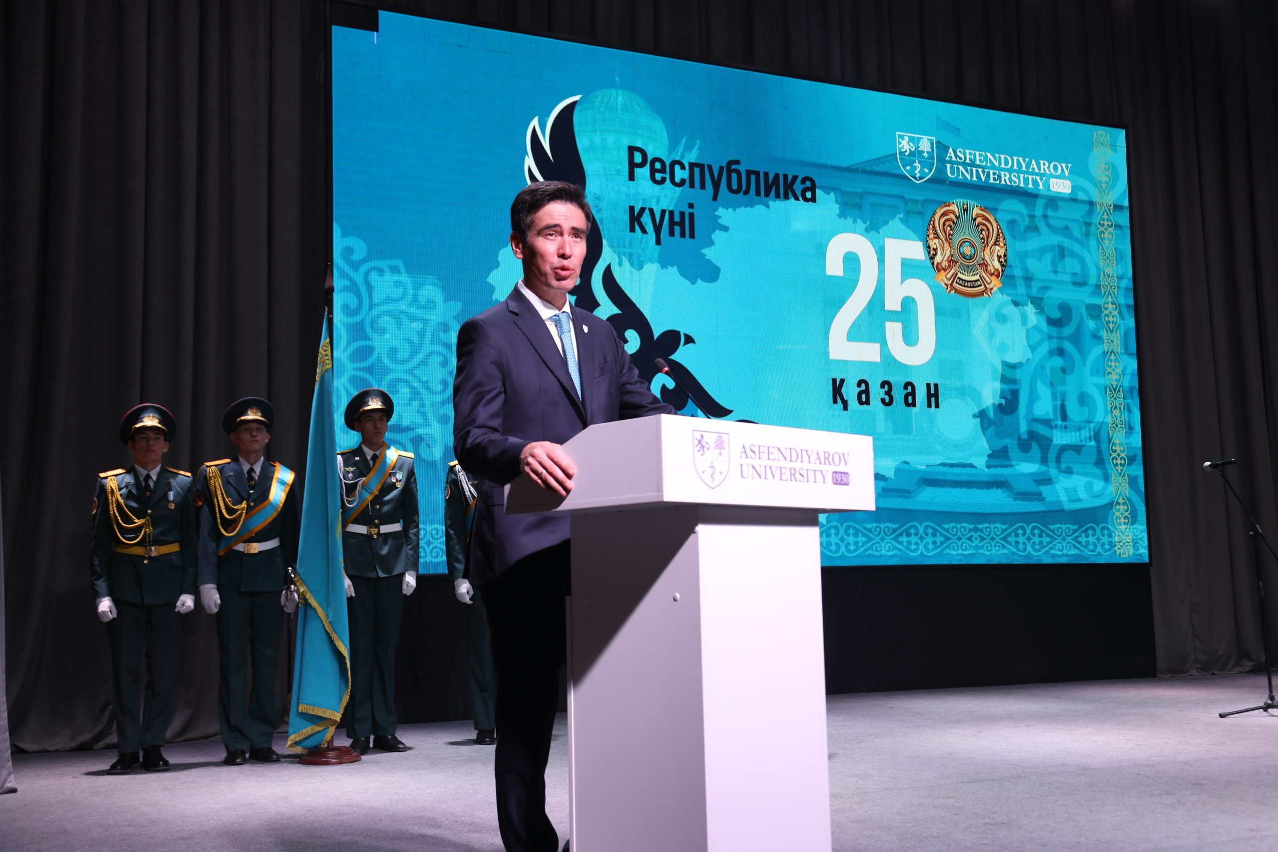 Сегодня в Казахском национальном медицинском университете имени Санжара Асфендиярова состоялось торжественное мероприятие, посвященное Дню Республики — празднику, символизирующему независимость, единство и гражданскую ответственность.