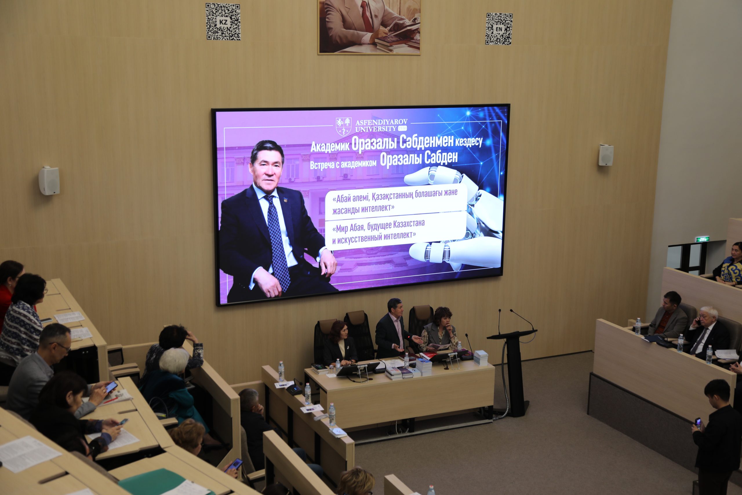 Оразалы Сабден выступил с докладом «Мир Абая, будущее Казахстана и искусственный интеллект». В начале выступления он остановился на том, что развитие страны напрямую связано с изменением общественного сознания, подчеркнув необходимость внутренней трансформации общества.