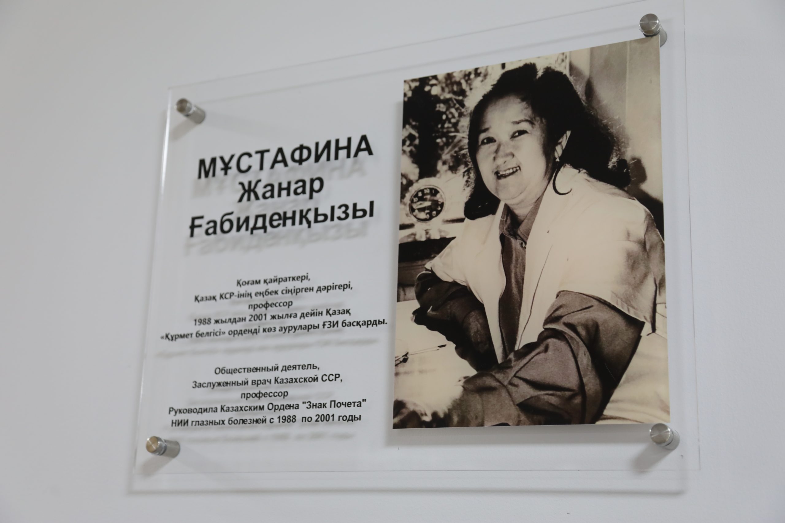 Сегодня в Казахском научно-исследовательском институте глазных болезней в Алматы состоялась торжественная церемония открытия мемориальной доски выдающемуся ученому-офтальмологу, заслуженному врачу Республики Казахстан, профессору Жанар Габиденовне Мустафиной.