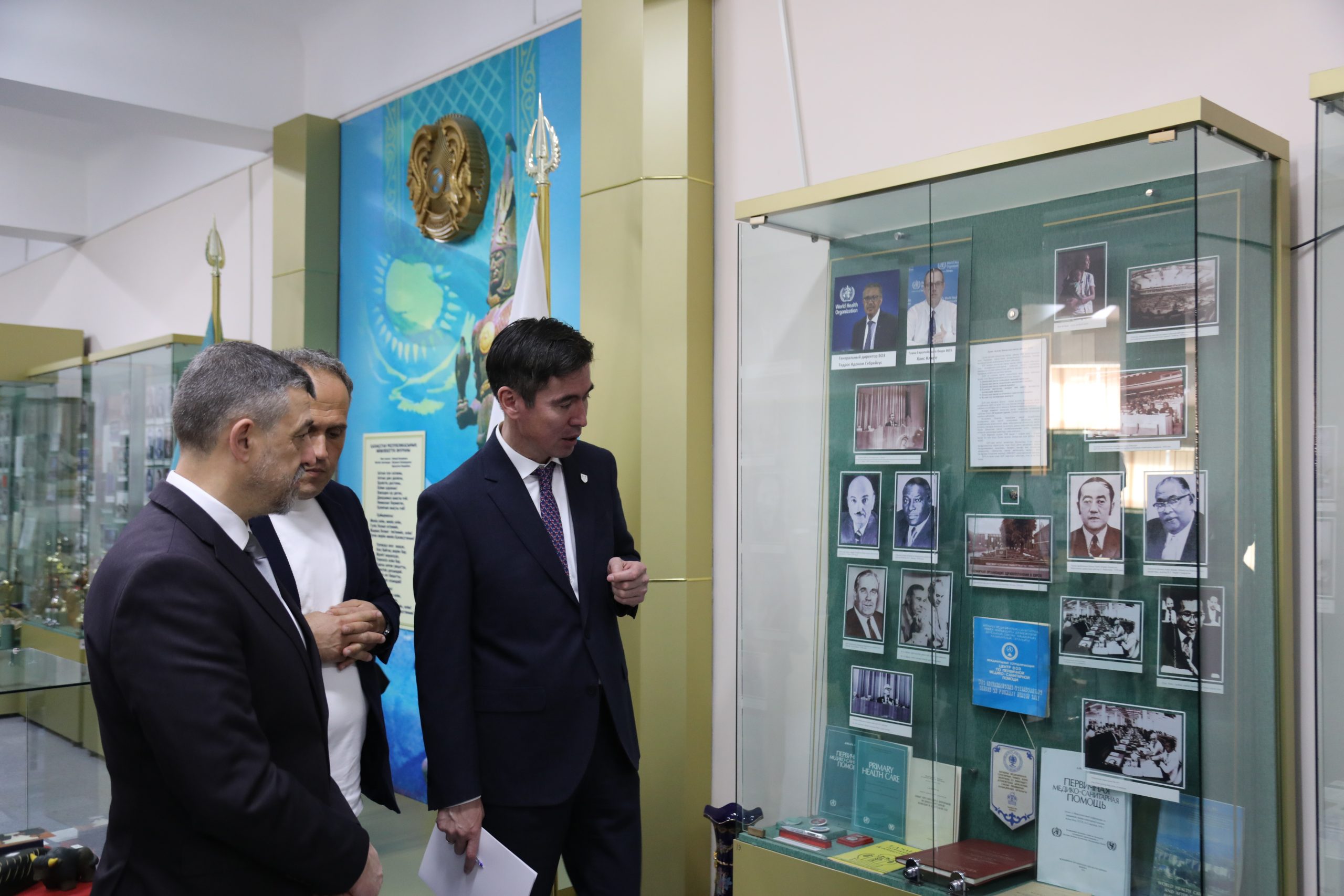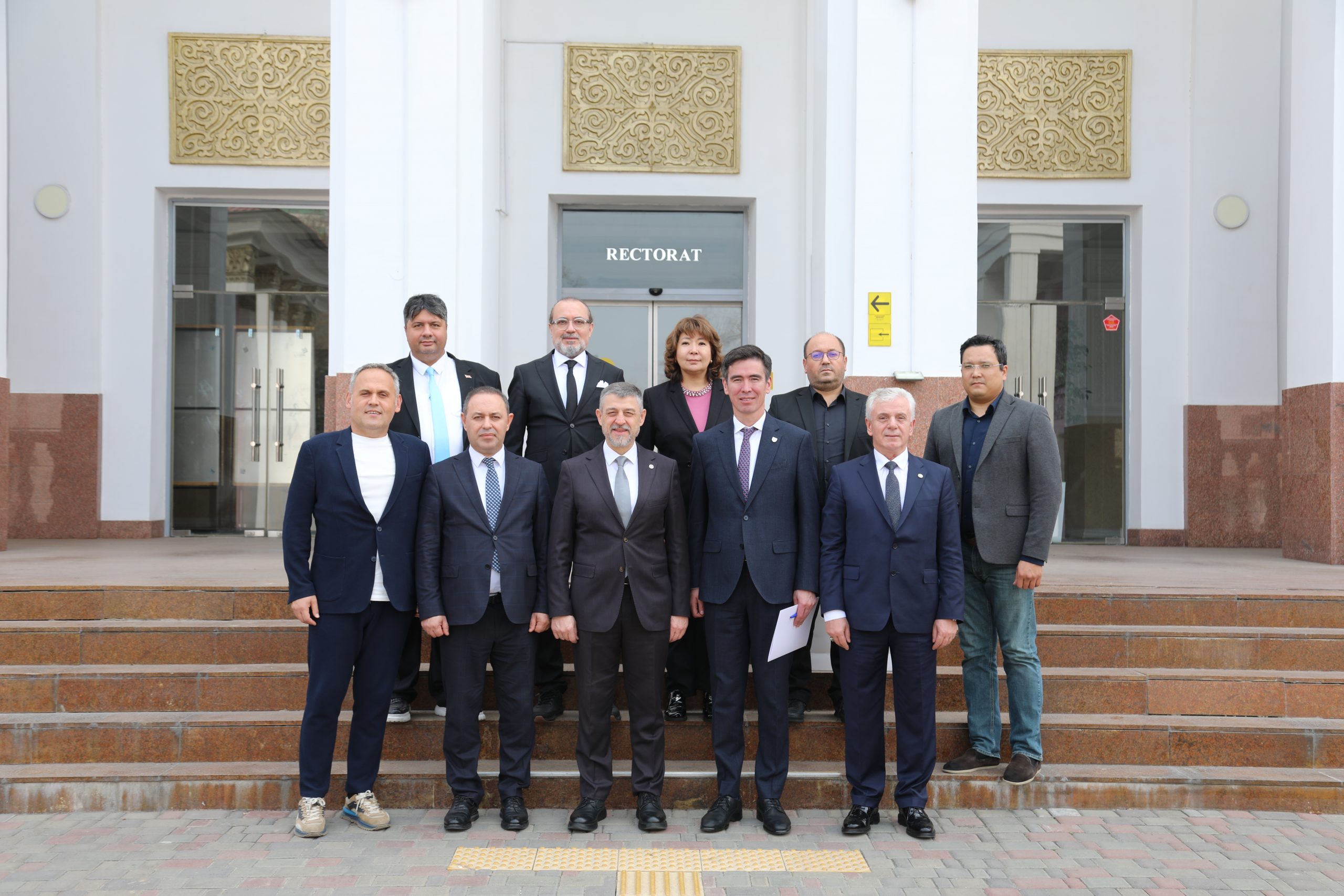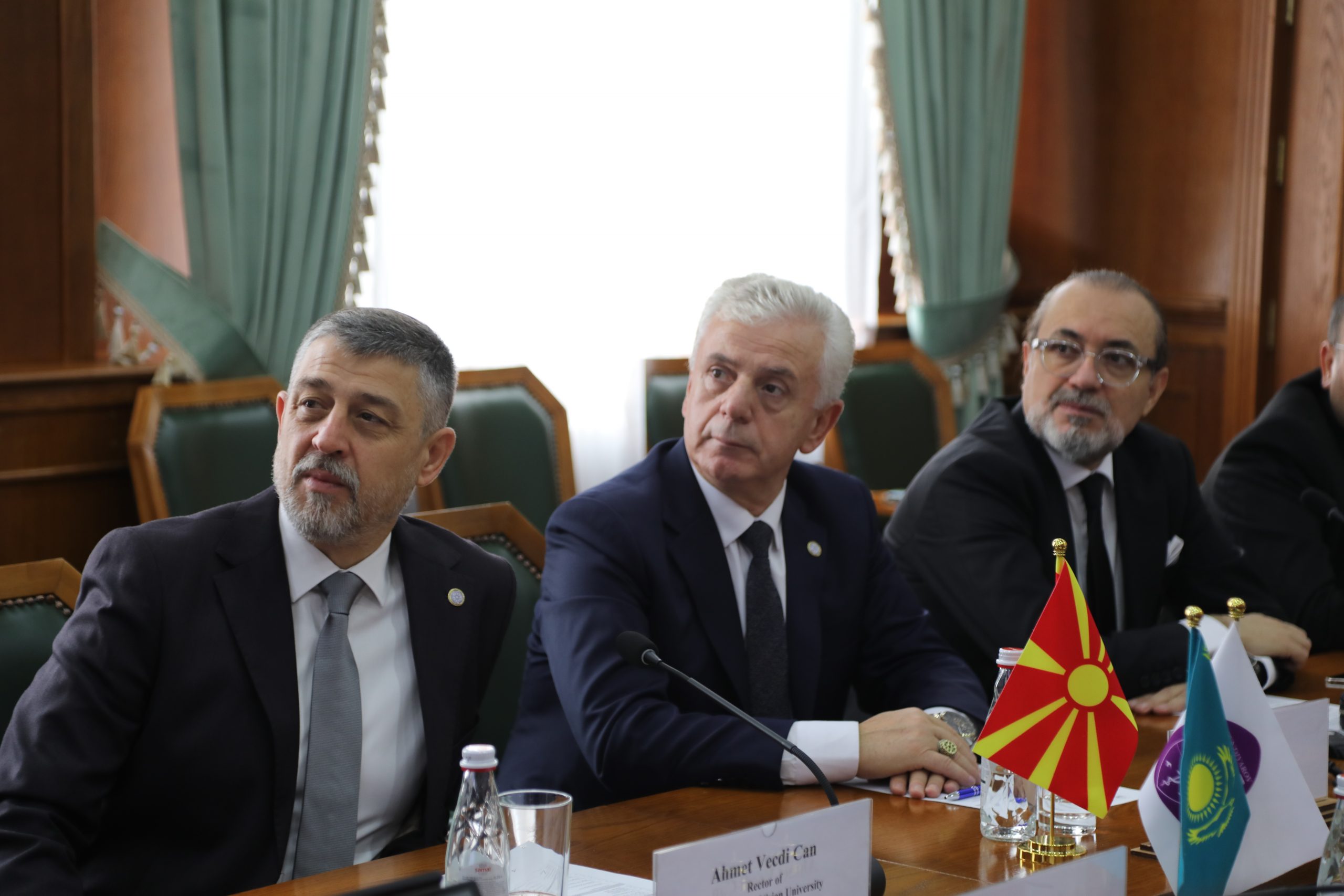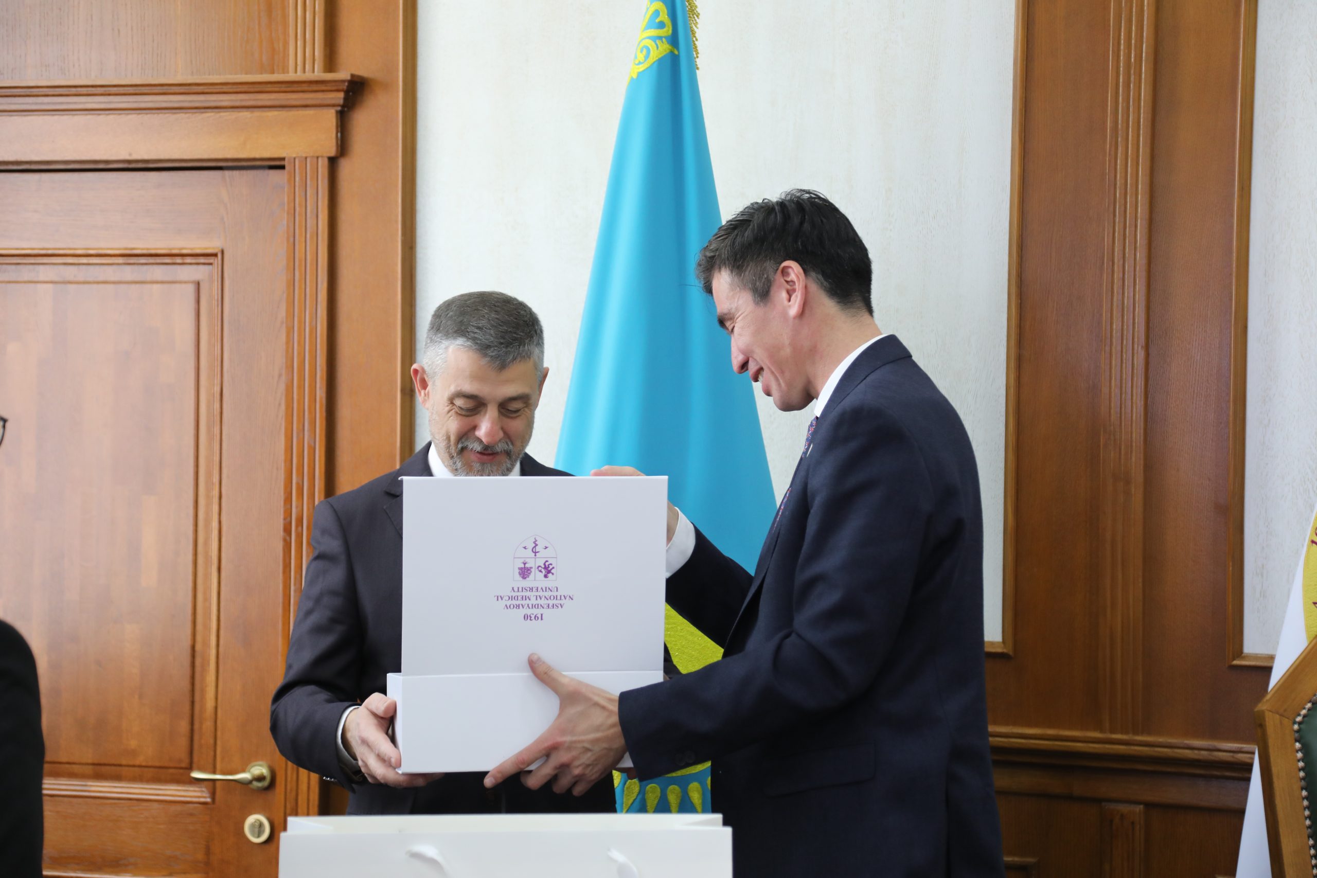 Во встрече приняли участие Ректор КазНМУ профессор Марат Шоранов и проректоры университета, а также Ректор International Vision University профессор Ahmet Vecdi Can, основатель университета профессор Fadıl Hoca и члены международной делегации.