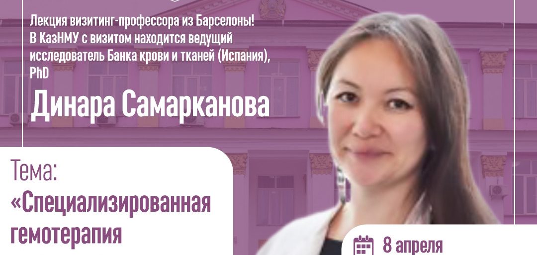 В КазНМУ с визитом находится ведущий исследователь Банка крови и тканей (Испания), PhD Динара Самарканова. Приглашаем всех желающих на лекцию: