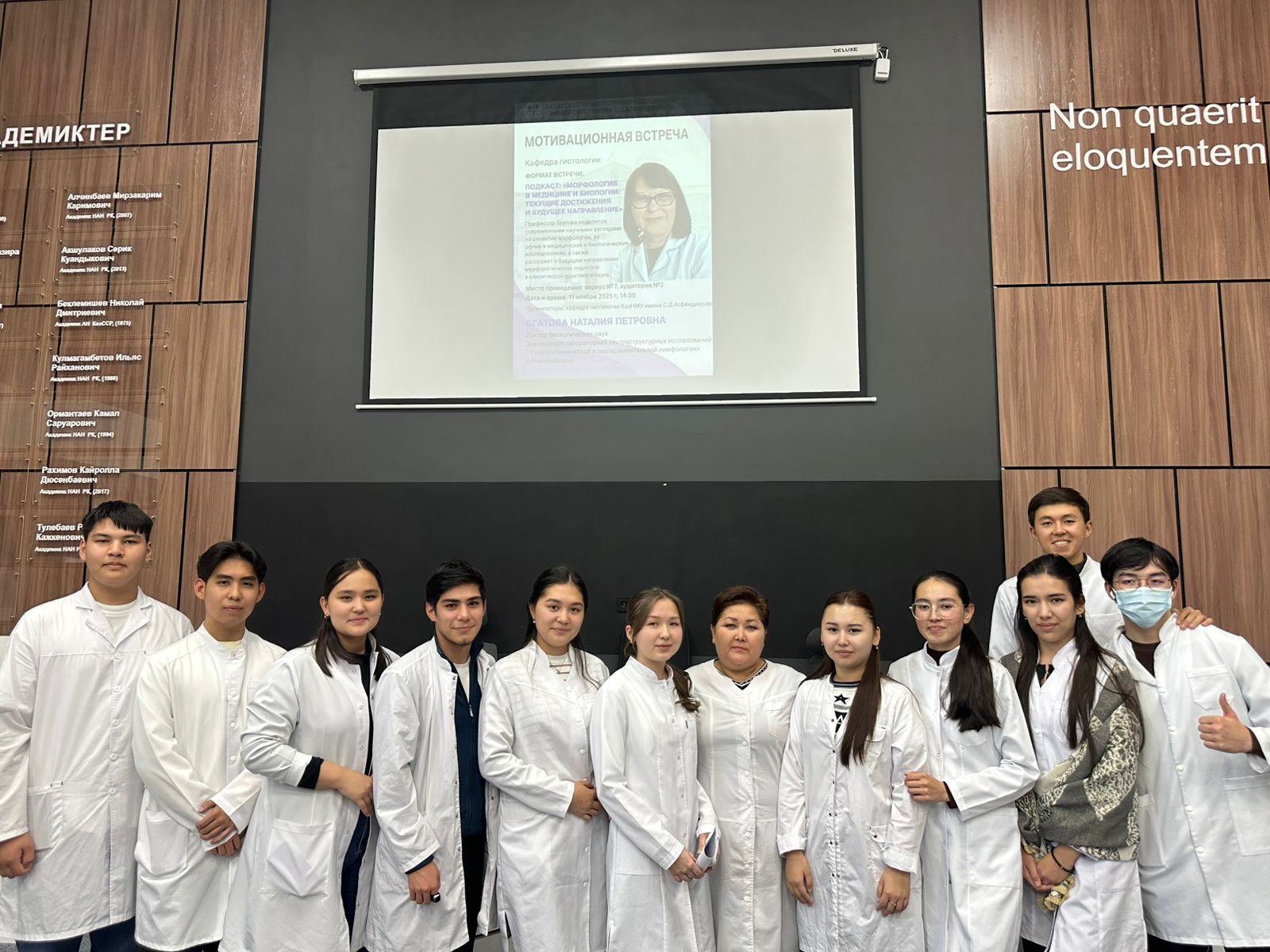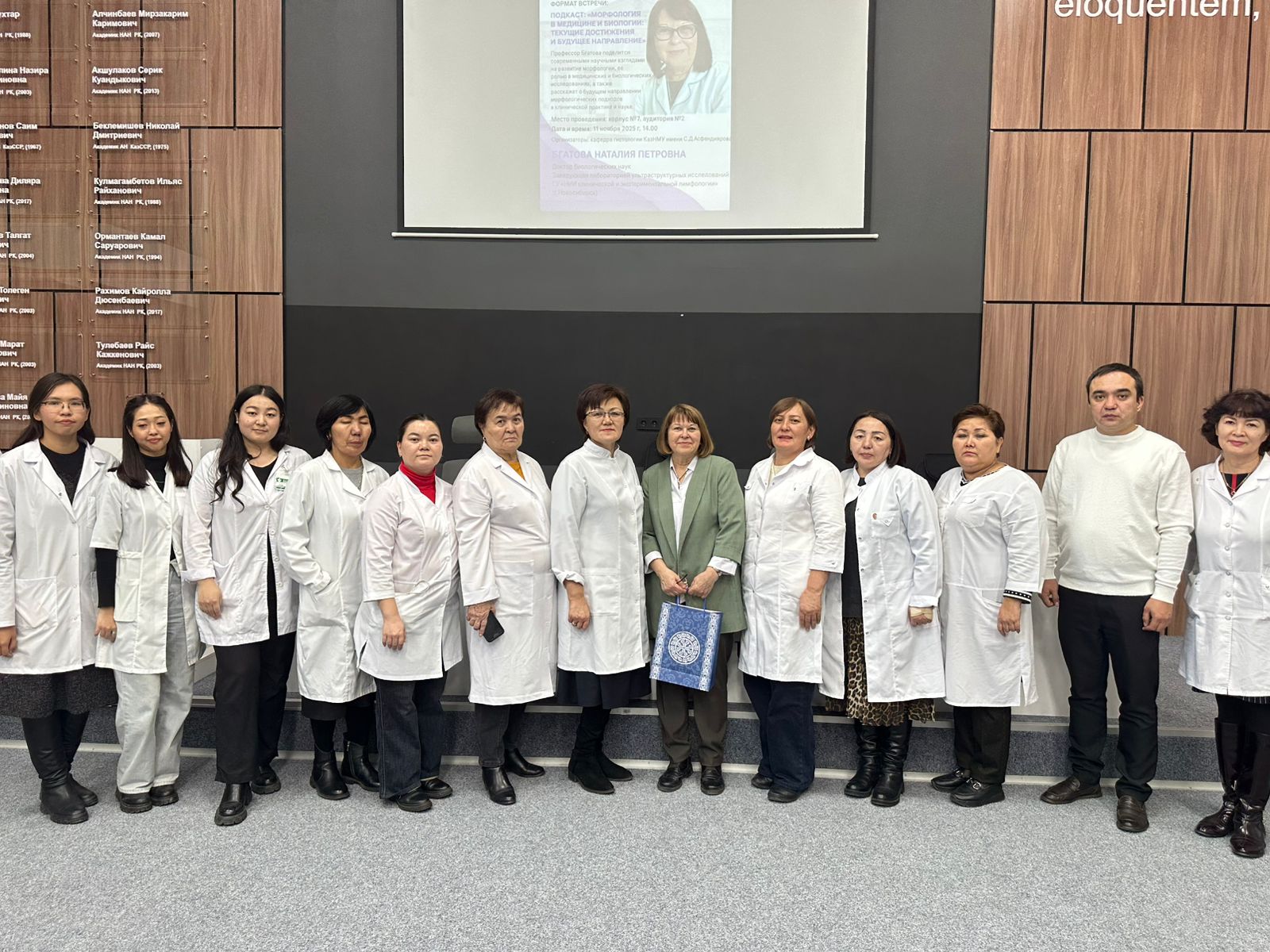 11 ноября 2025 года на кафедре гистологии Казахского национального медицинского университета имени С. Д. Асфендиярова состоялась мотивационная встреча в формате подкаста с доктором биологических наук, профессором, заведующей лабораторией ультраструктурных исследований ГУ «НИИ клинической и экспериментальной лимфологии» (г. Новосибирск) Наталией Петровной Бгатовой.