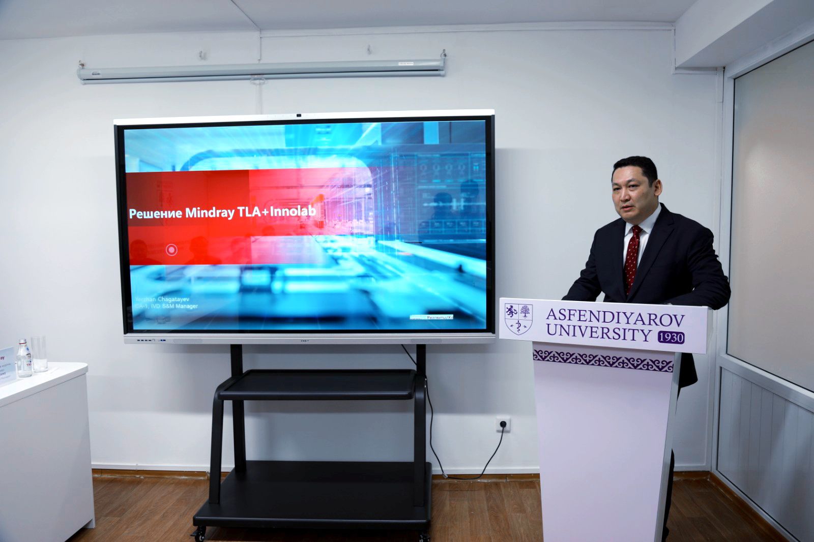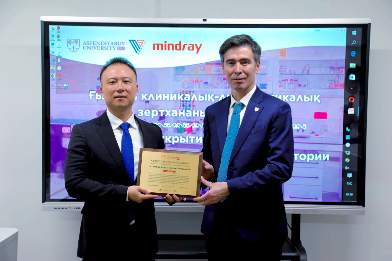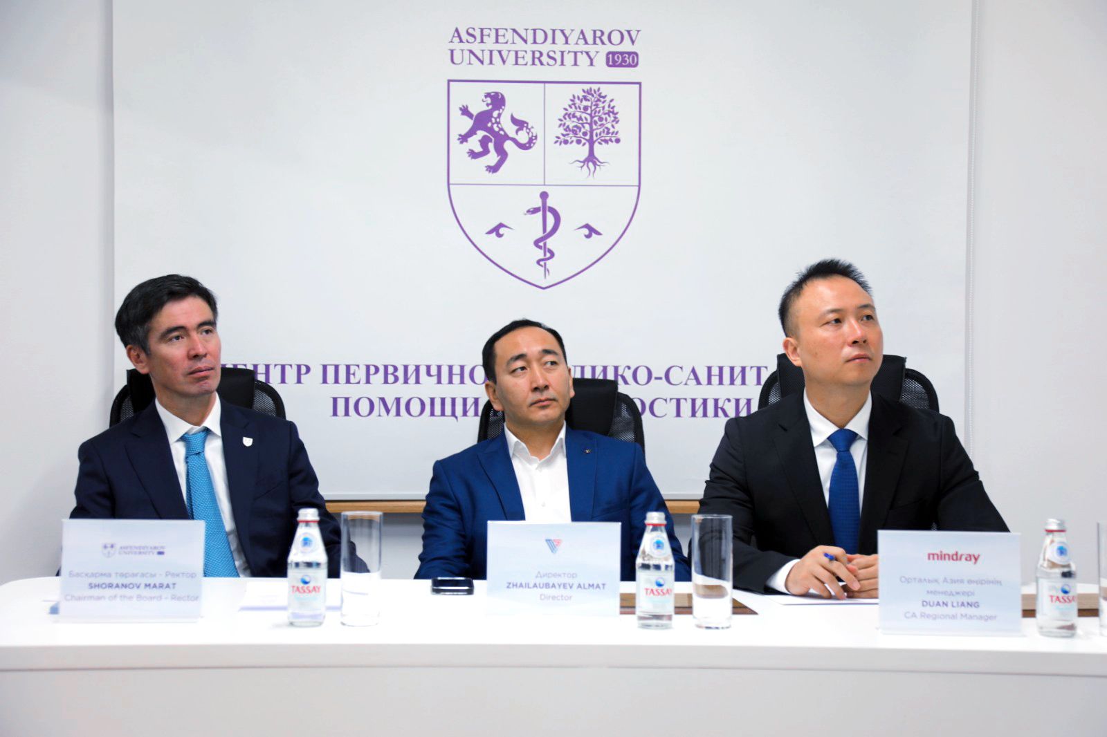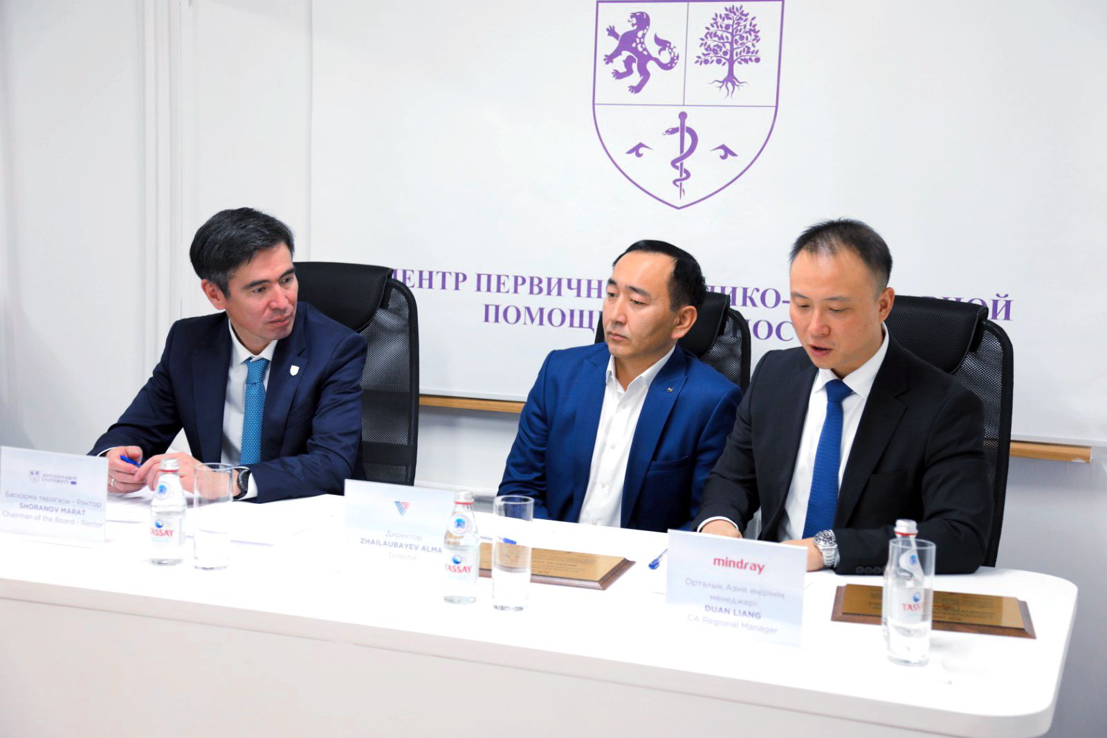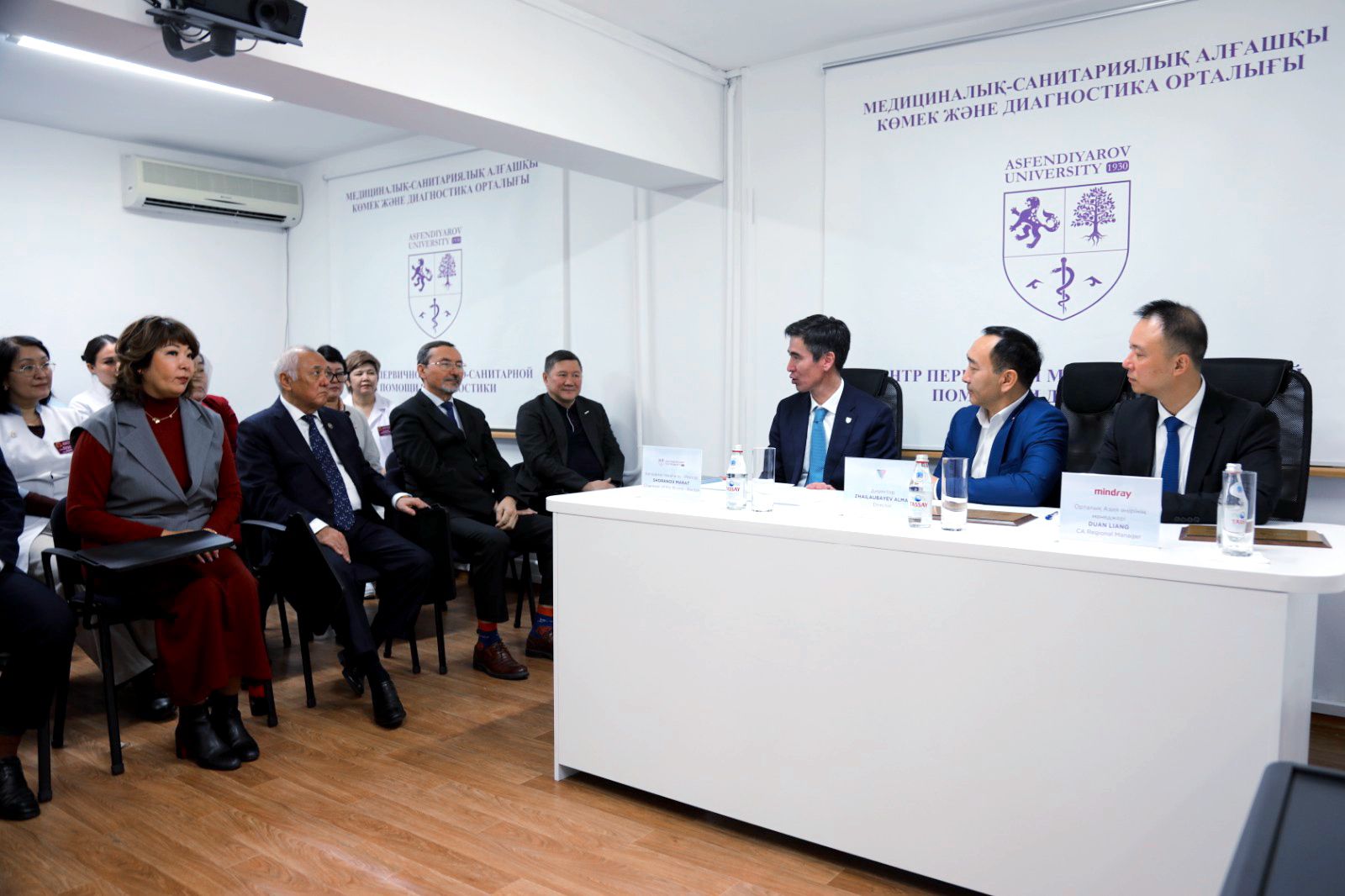 Проект был реализован в формате трехстороннего сотрудничества при поддержке международной компании Mindray, представительства в Центральной Азии, самого КазНМУ и частного партнера MedicalSystem. Mindray, основанная в 1991 году в Шэньчжэне, является одним из крупнейших мировых производителей медицинского оборудования. Сегодня компания поставляет продукцию более чем в 190 стран мира, имеет десятки филиалов в Китае и дочерние предприятия в США, Канаде, Германии, Франции, Индии и других странах. Ее миссия заключается в том, чтобы сделать качественное здравоохранение доступным для большего числа людей, внедряя передовые технологии и стандарты. Именно благодаря такому сотрудничеству университет получил возможность интегрировать оборудование мирового уровня в учебный и клинический процесс, что само по себе является ценным опытом для медицинских вузов Казахстана.