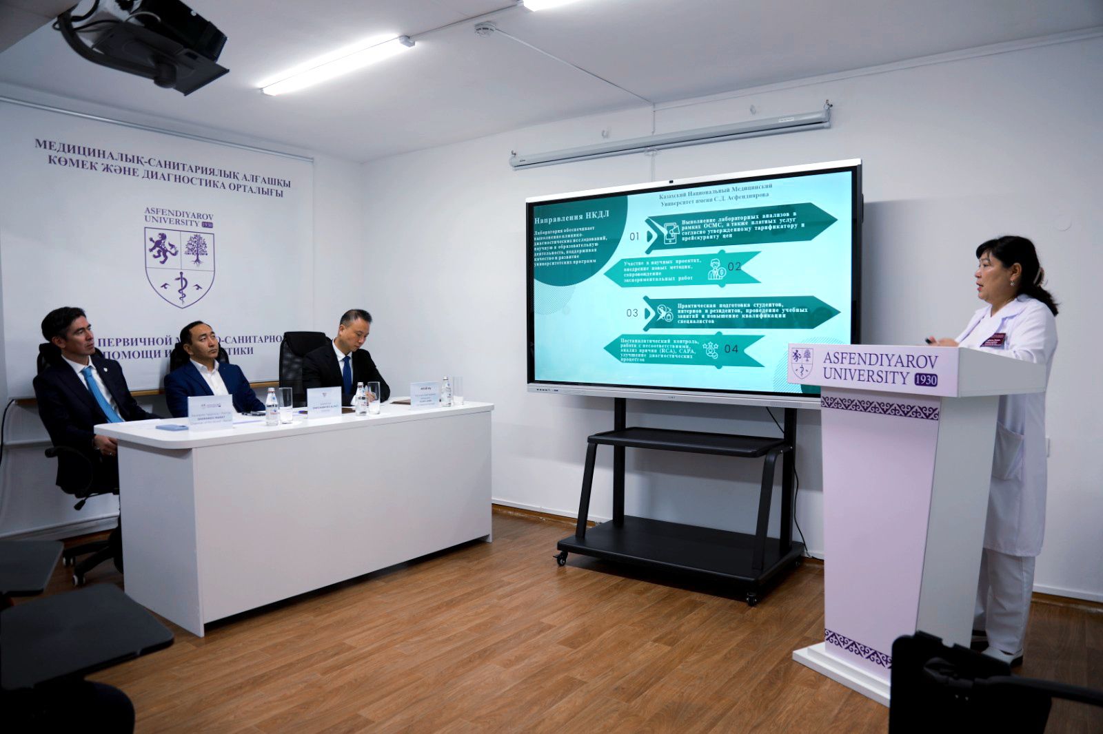 Справка: Центр первичной медико-санитарной помощи и диагностики КазНМУ осуществляет амбулаторно-поликлиническое обслуживание прикрепленного населения, проводит клинико-диагностические исследования, а также реализует образовательные, научные и профилактические программы в составе университета.