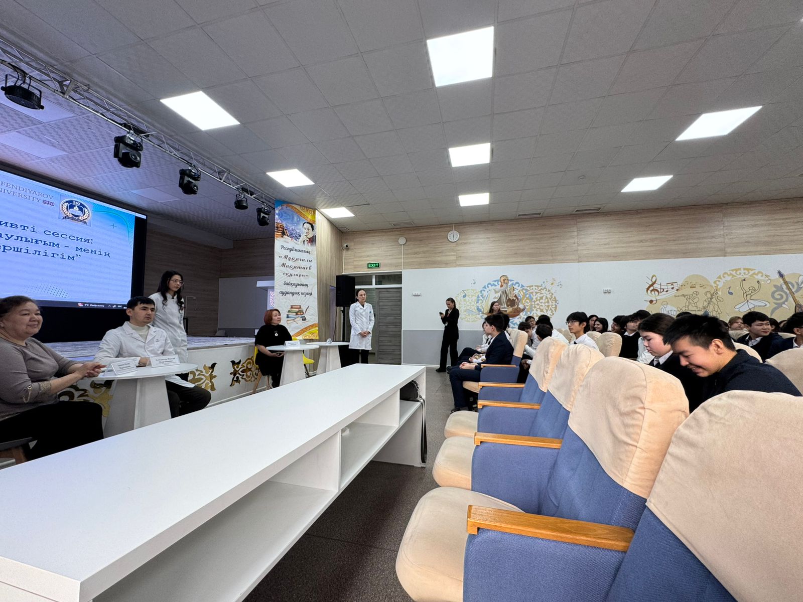 Организаторами мероприятия выступили ППС кафедры амбулаторно-поликлинической педиатрии КазНМУ им.С.Д.Асфендиярова профессор Нургалиева Ж.Ж., ассистент профессора Тажиева К.Н. совместно с обучающимися резидентами 24П-002группы по специальности «Педиатрия» (Гулиева Камиля, Халитова Гульназ) и врачами-интернами П20-002 группы Школы педиатрия (Махсут Ақбота Мәдиқызы, Саматова Назерке Саматқызы). В ходе воспитательного часа была сессия «Вопрос-ответ»: школьники подростки активно задавали интересующие их вопросы, на которые будущие врачи дали исчерпывающие ответы.