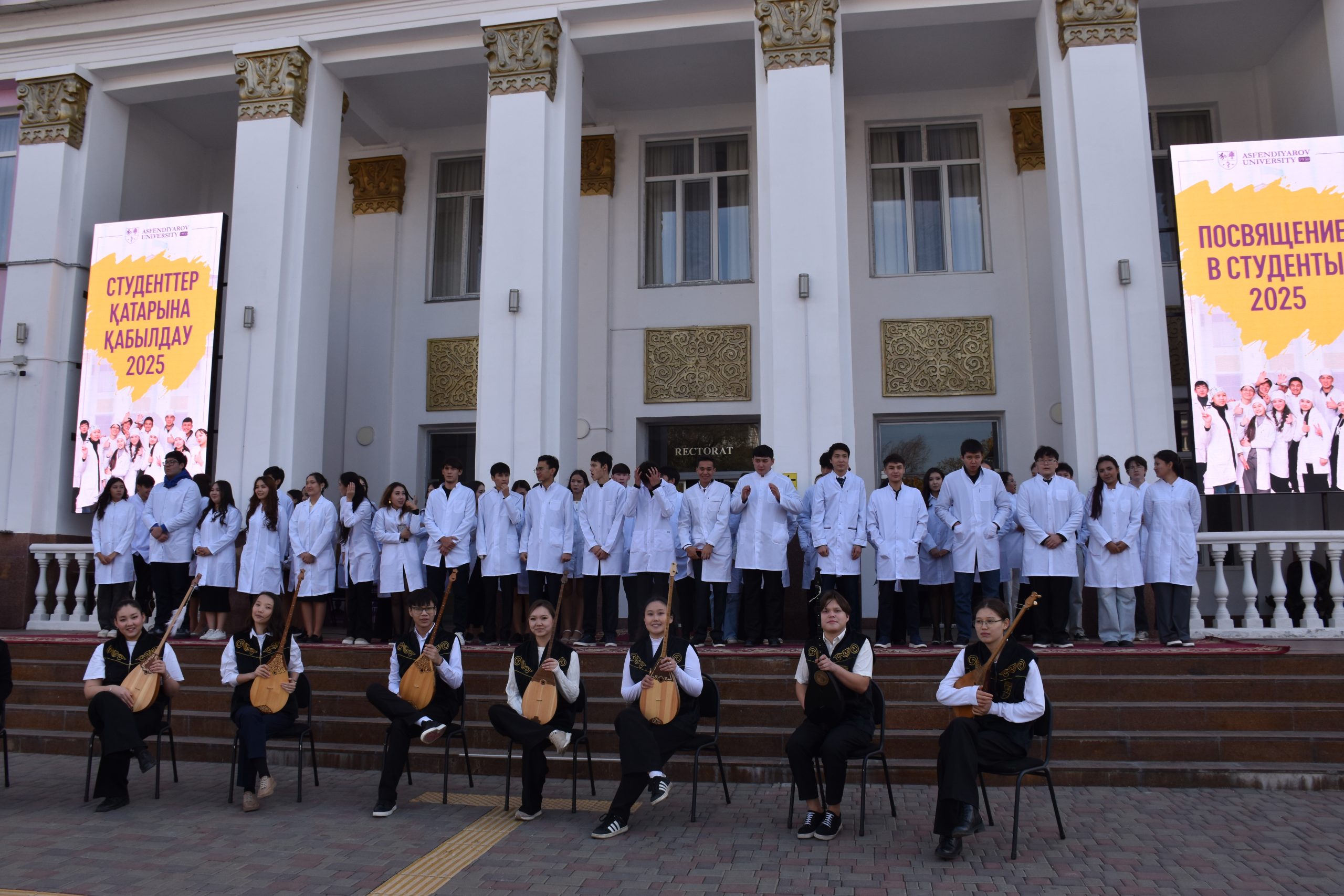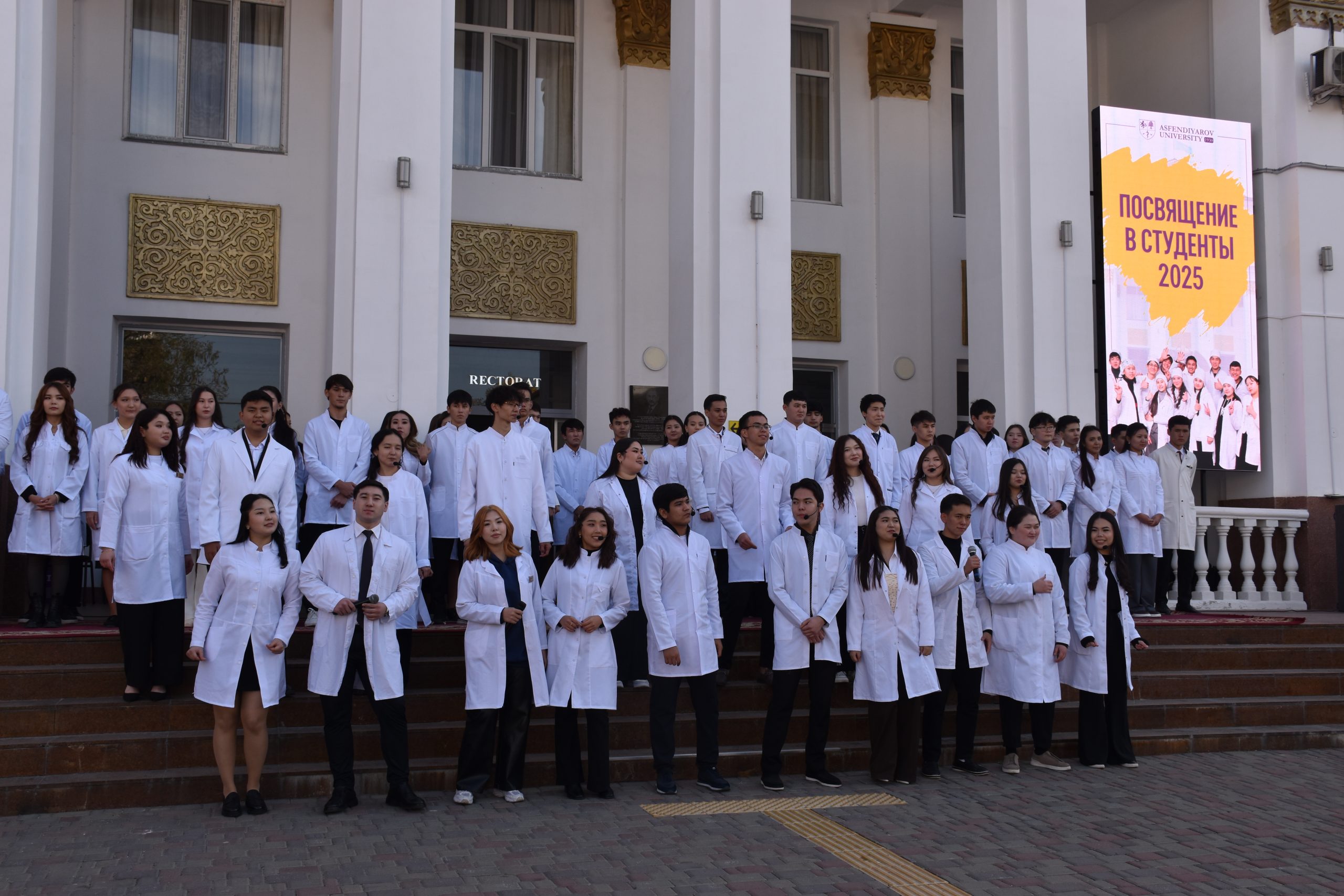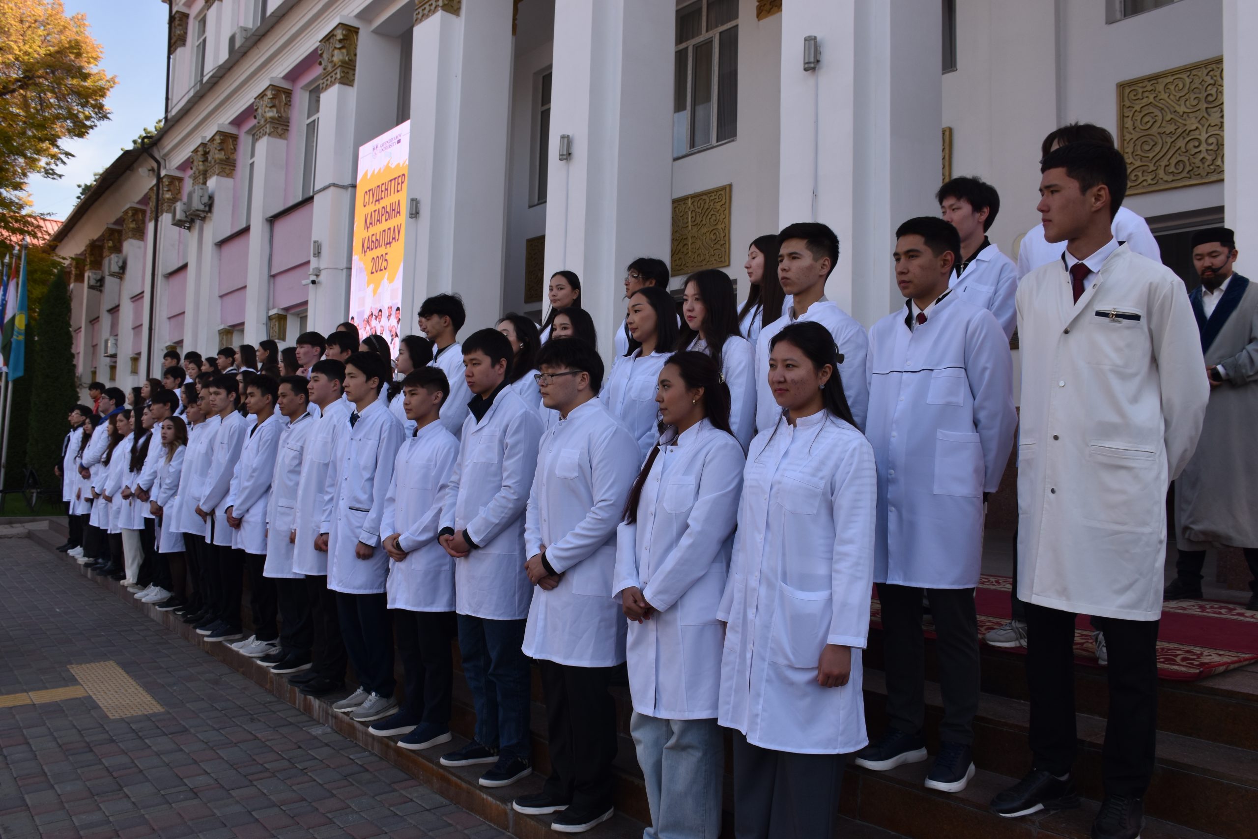 В Казахском национальном медицинском университете имени Санжара Асфендиярова состоялось одно из самых ожидаемых событий года — торжественная церемония «Посвящения в студенты».