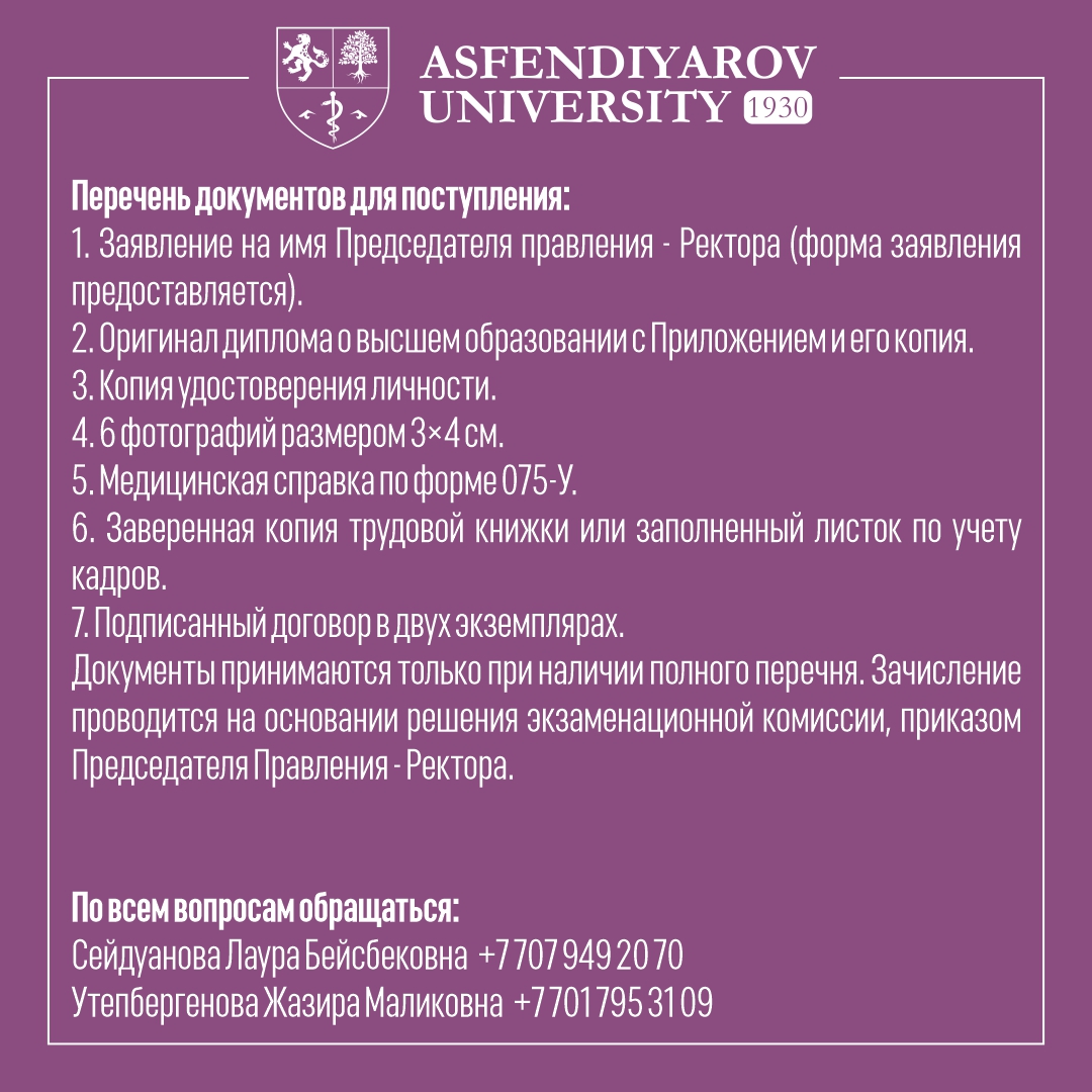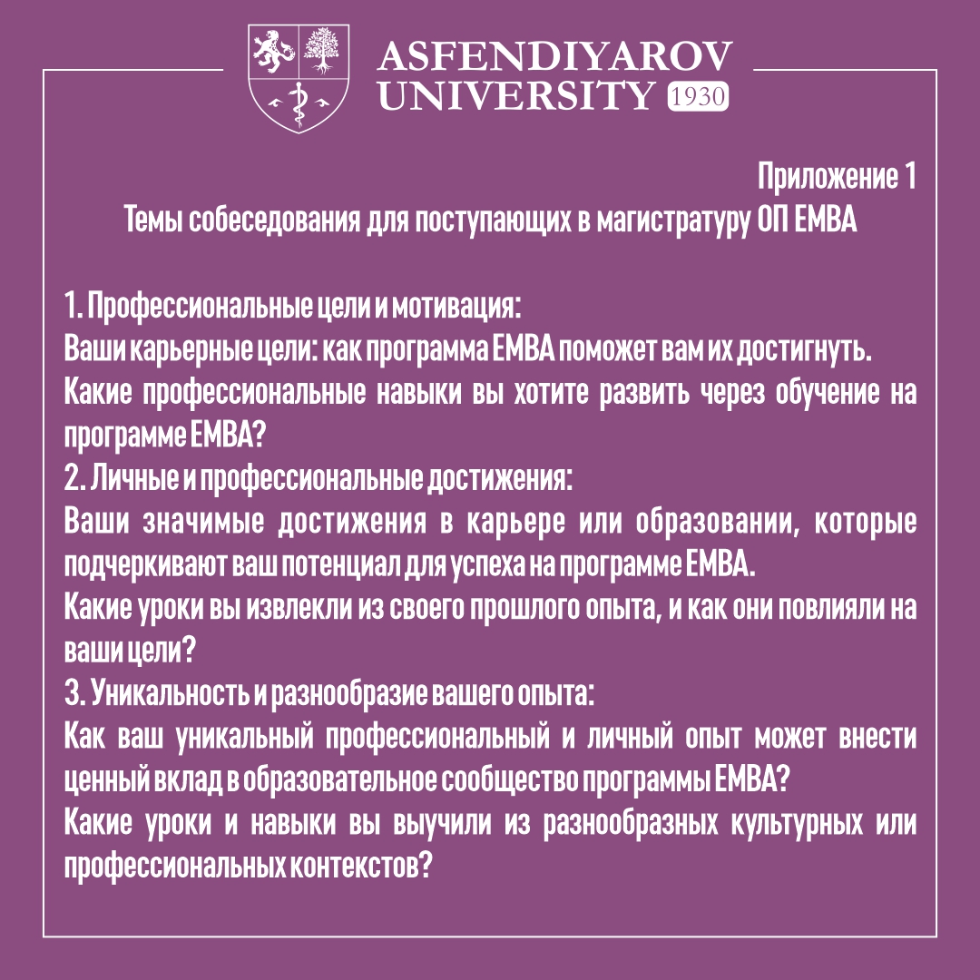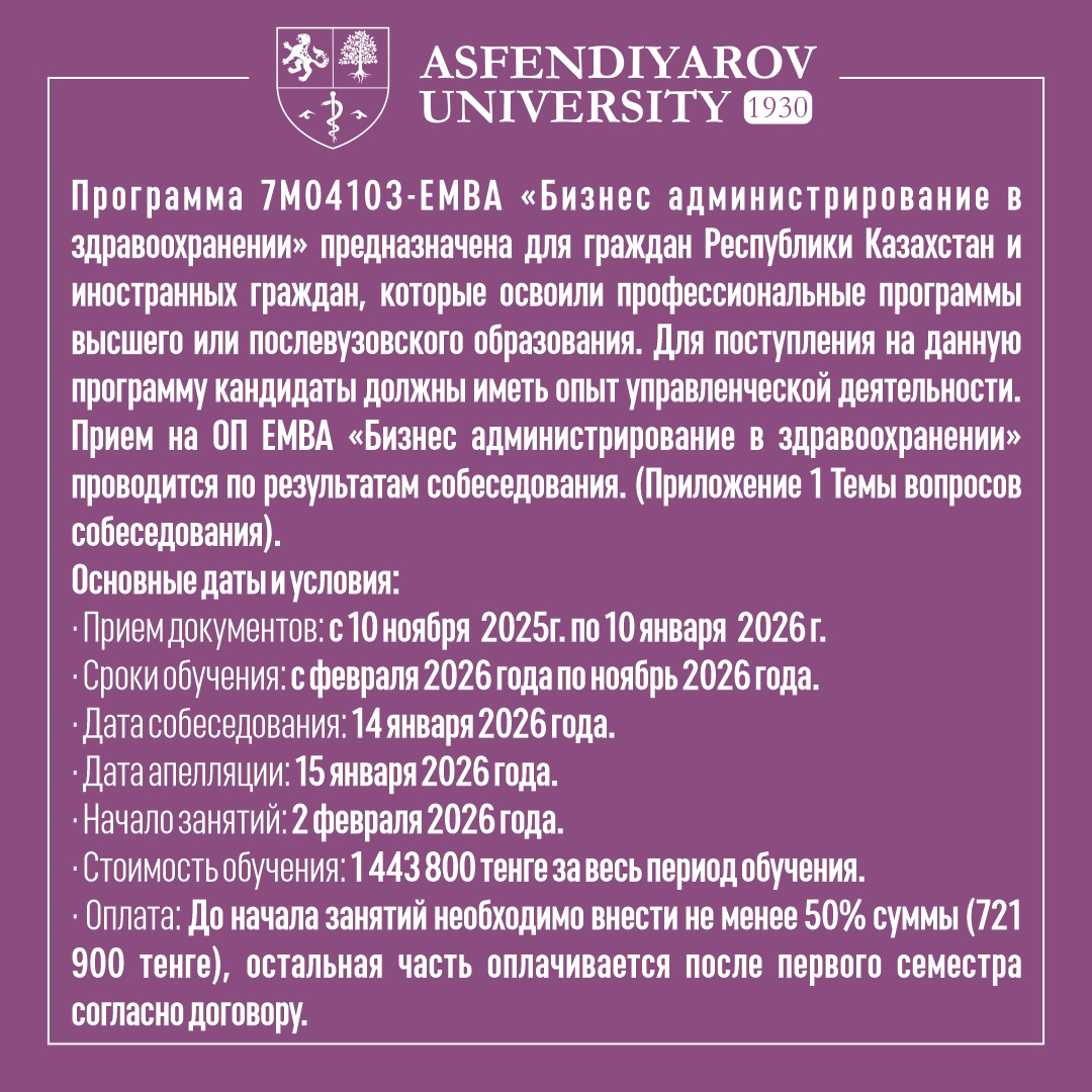 Прием на образовательную программу 7М04103-ЕМВА «Бизнес администрирование в здравоохранении» в КазНМУ имени С.Д.Асфендиярова