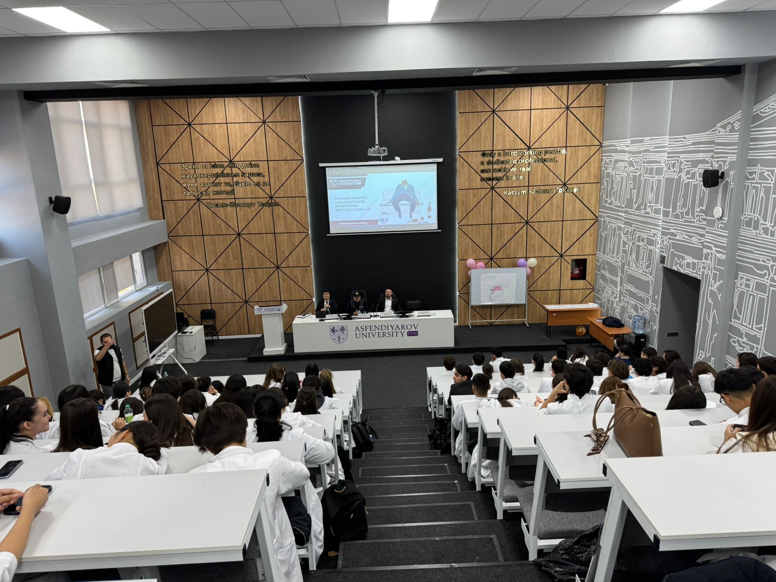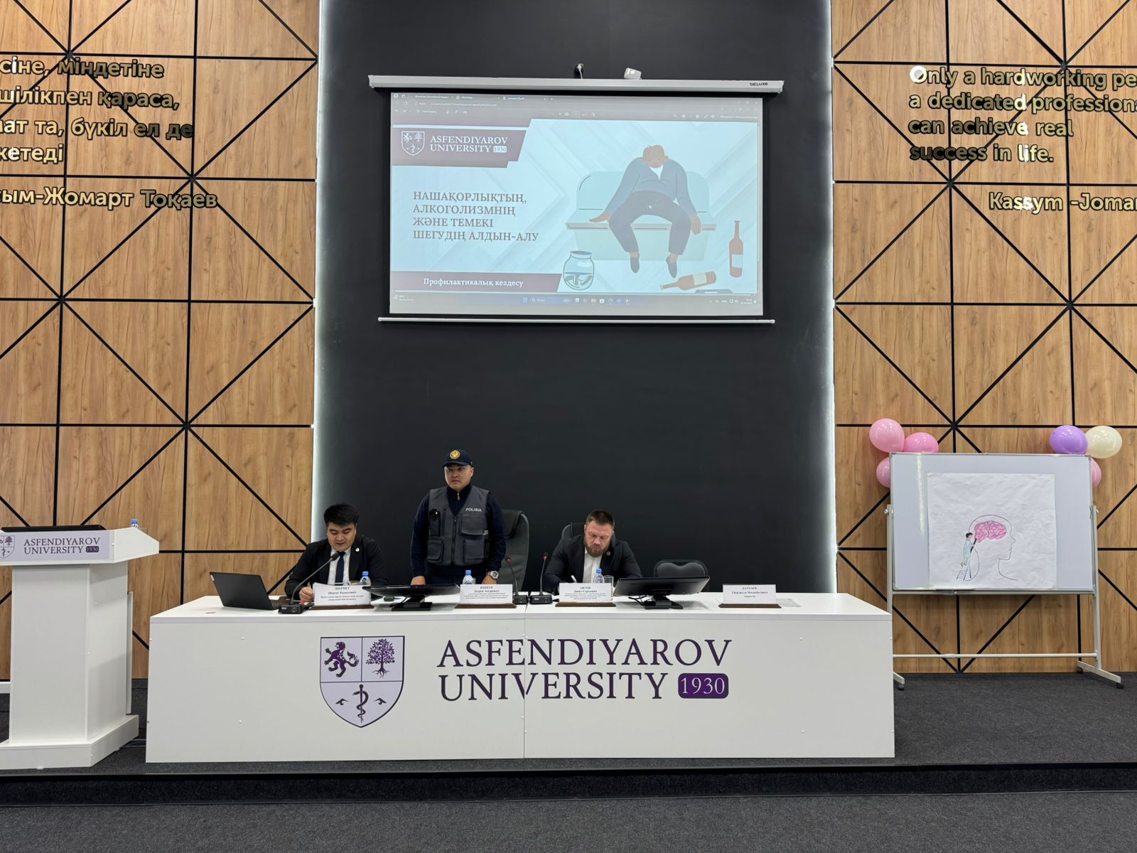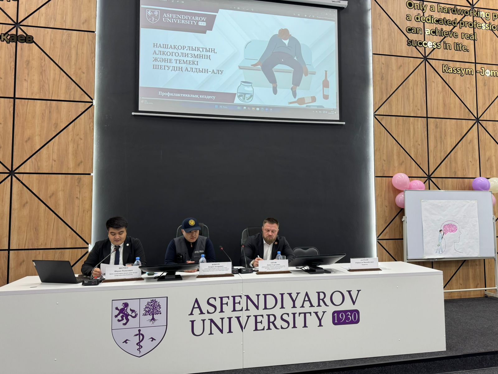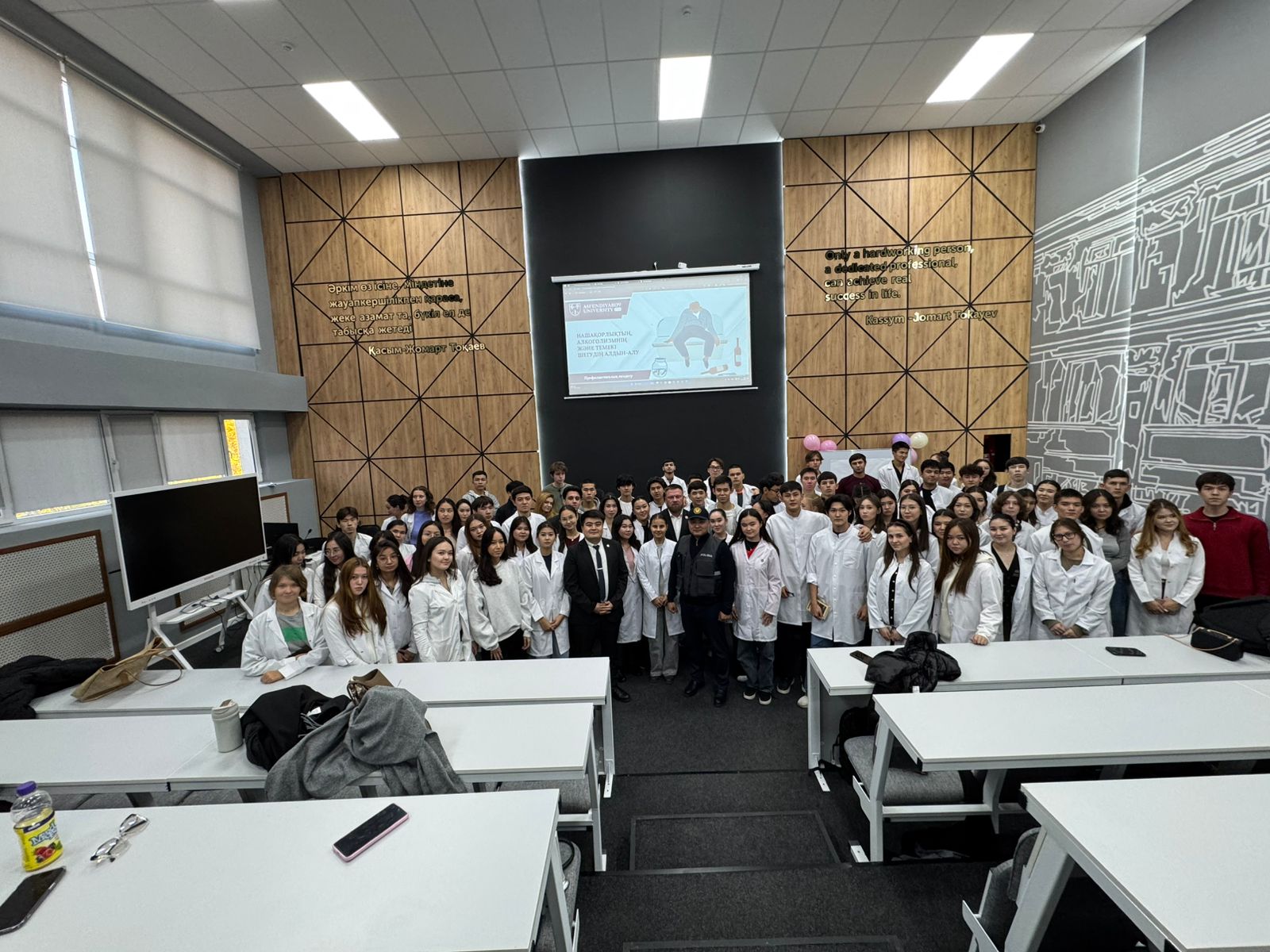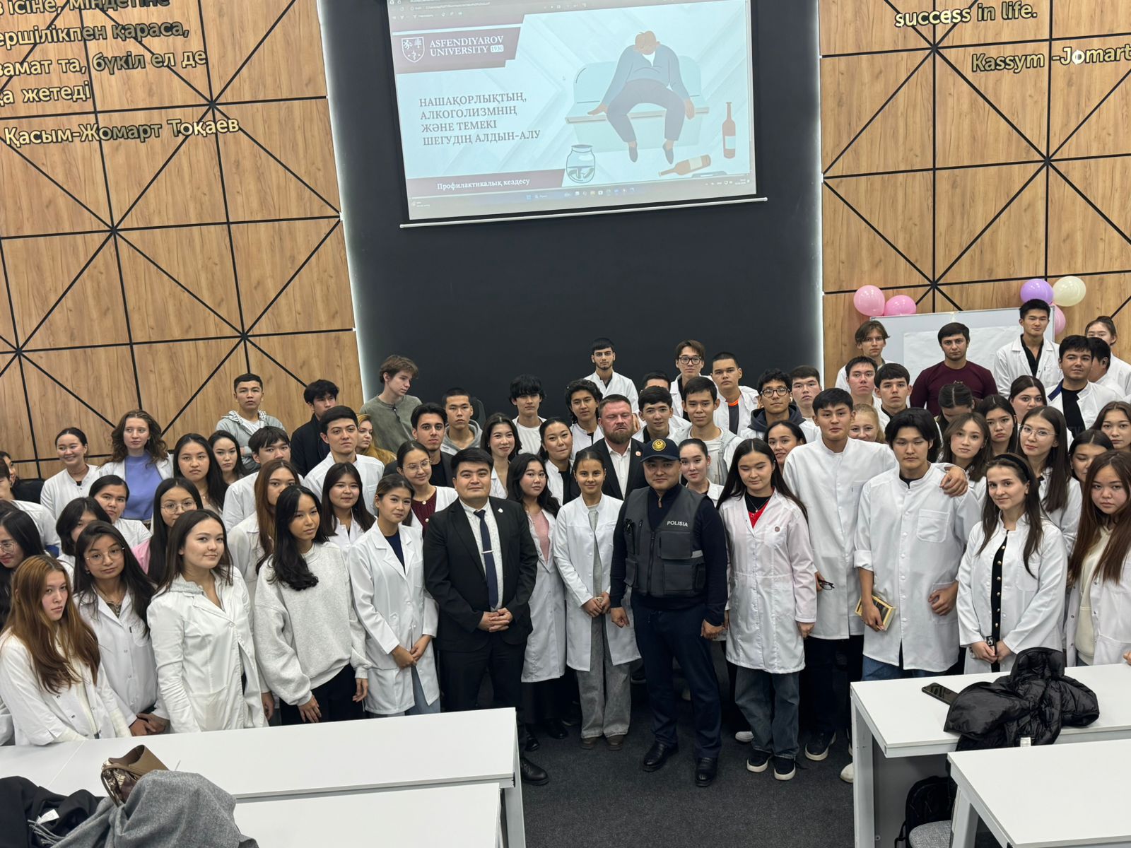 10 октября 2025 года в 15:00 в 7-м учебном корпусе, аудитории №7, состоялась профилактическая встреча на тему «Нашақорлықтың, алкоголизмнің және темекі шегудің алдын алу», организованная с целью предупреждения вредных привычек среди молодежи.
