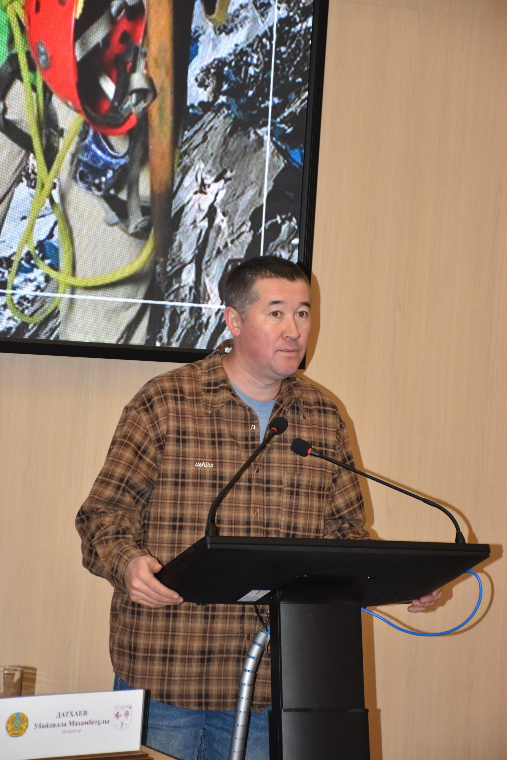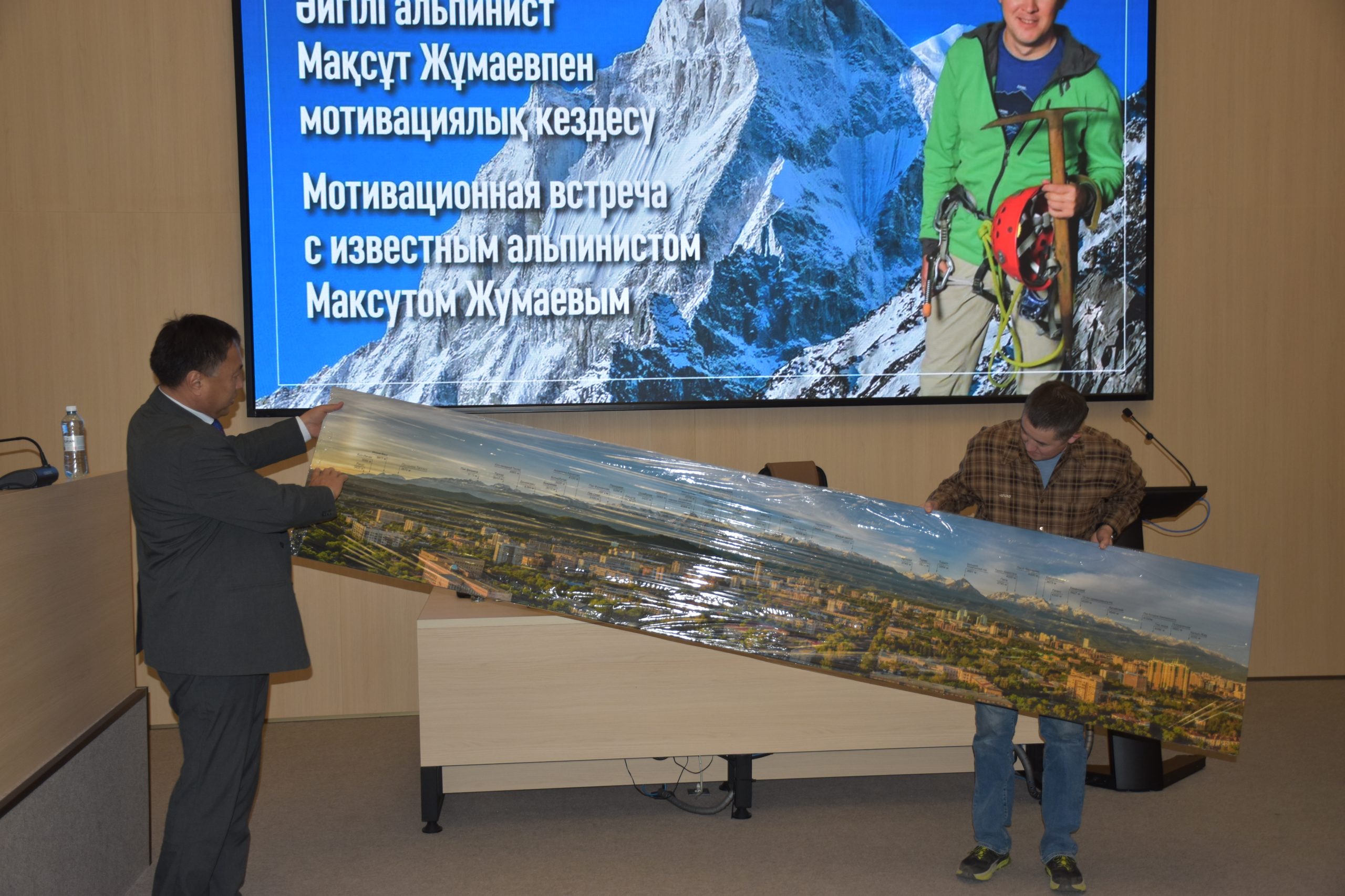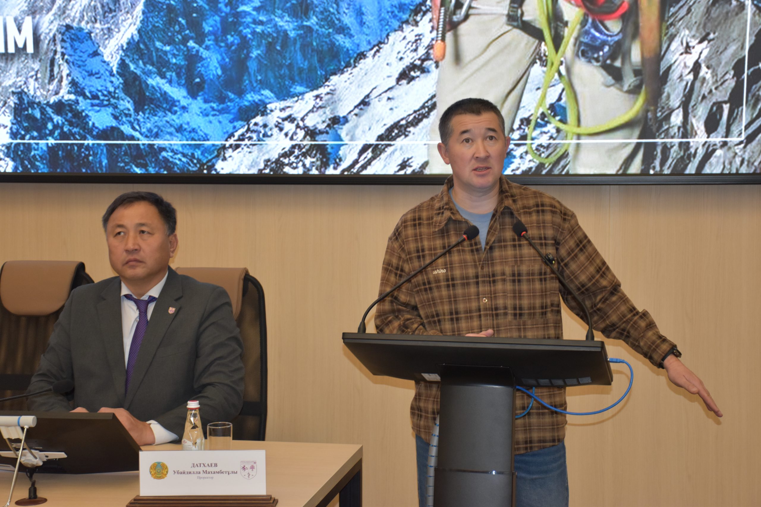 Жумаев объяснил студентам, что такое риск на высоте, какие ошибки совершают даже опытные альпинисты, как правильно принимать решения в экстремальных условиях и какие правила позволяют сохранить жизнь. Он показал ролик, где всего одна минута ошибки оборачивается трагедией, и напомнил: «Всего одна минута и такая большая жизнь». Это был фрагмент документального фильма «Первая девушка-казашка на Эвересте», который для него имеет особое значение.