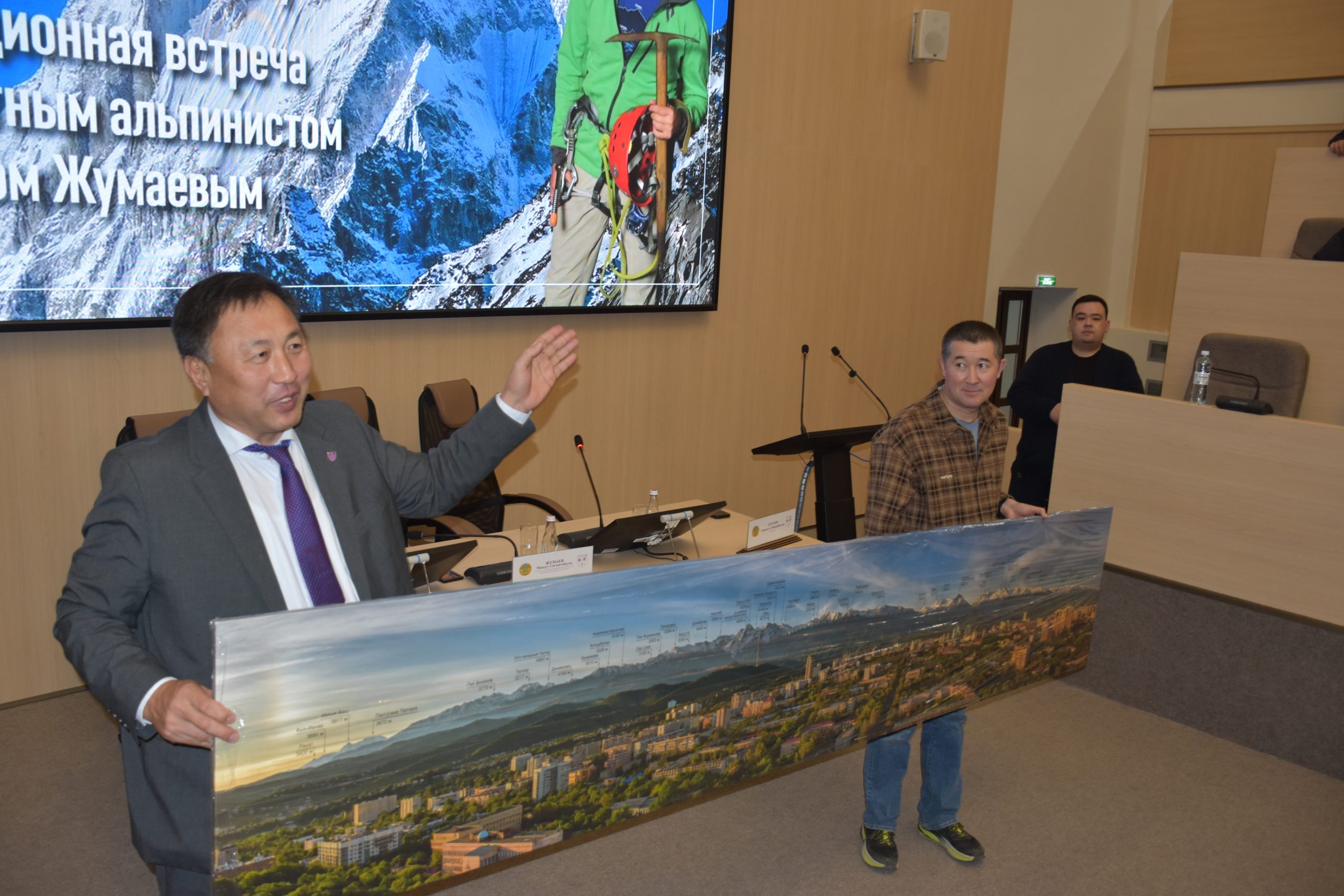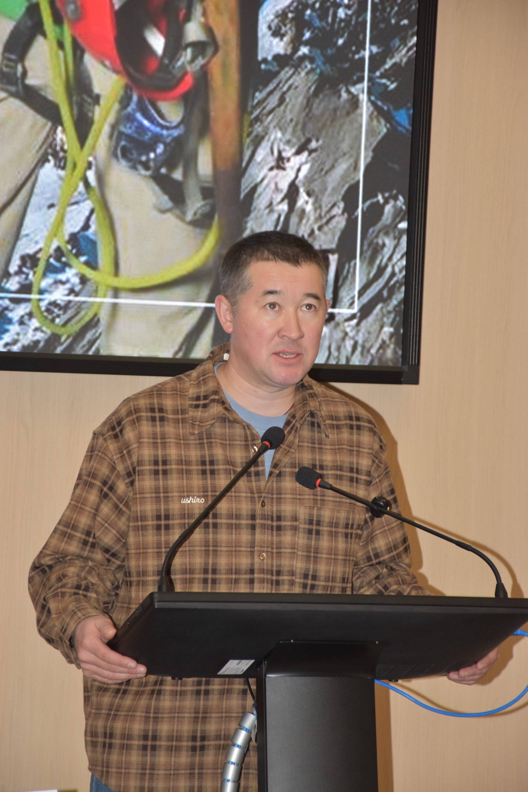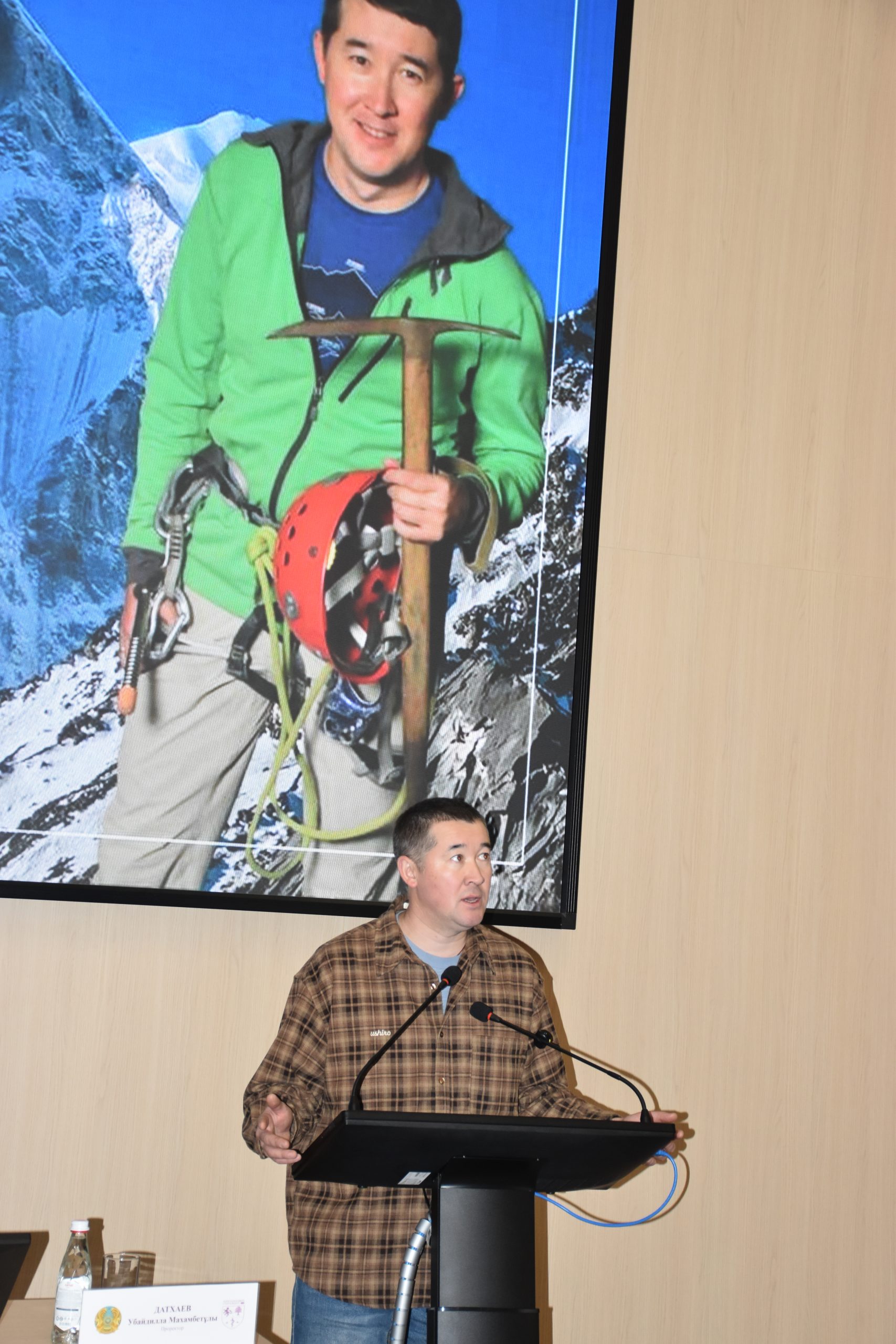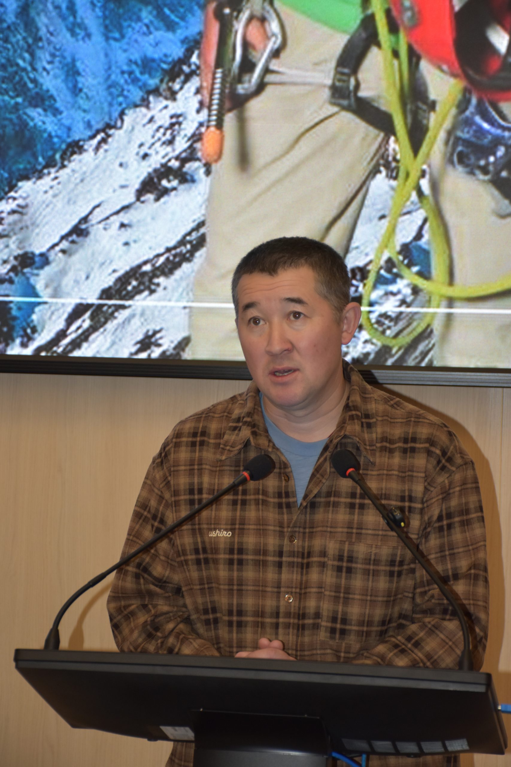 Максут Жумаев начал встречу с личной истории. Он рассказал, что родился в Западном Казахстане, в степи, где гор не было вовсе. Его мама всю жизнь работала зубным врачом, сам он получил первое высшее образование как ветеринарный врач. Но судьба привела его в альпинизм, и именно там он нашел свое настоящее призвание.
