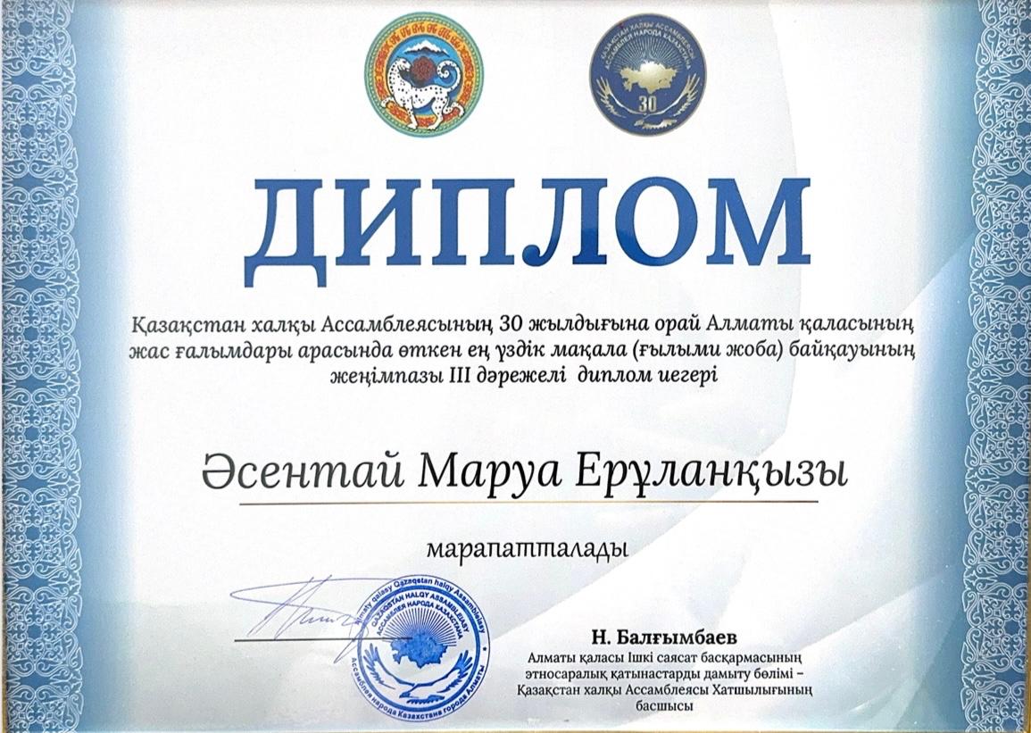 As part of the celebration of the 30th anniversary of the Assembly of the People of Kazakhstan, a competition for the best article (research project) among young researchers of Almaty was held.