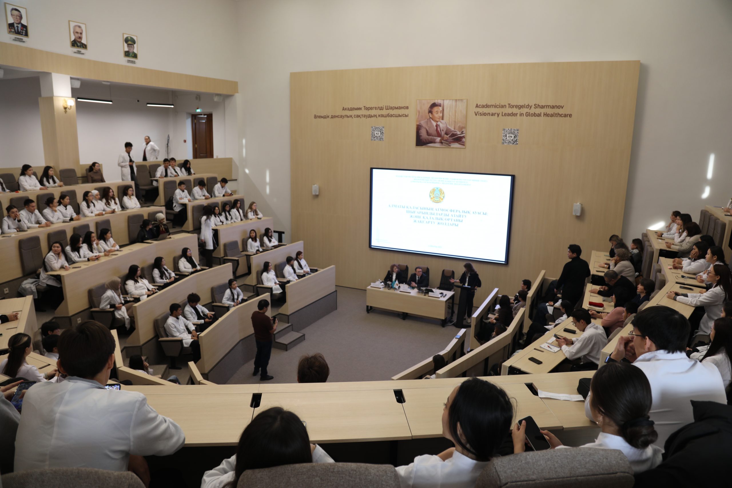 On 5 December 2025, the Hall of Fame named after academician T. Sharmanov at KazNMU hosted a guest lecture entitled “Almaty’s ambient air: reducing emissions and improving the urban environment”.