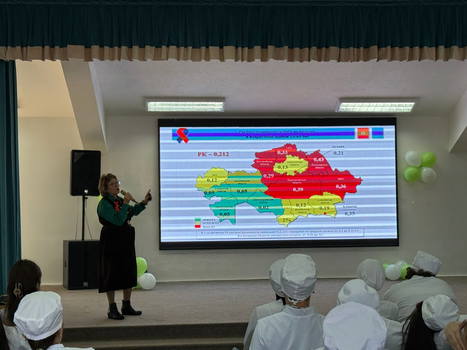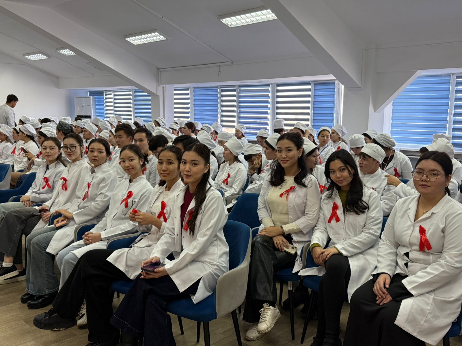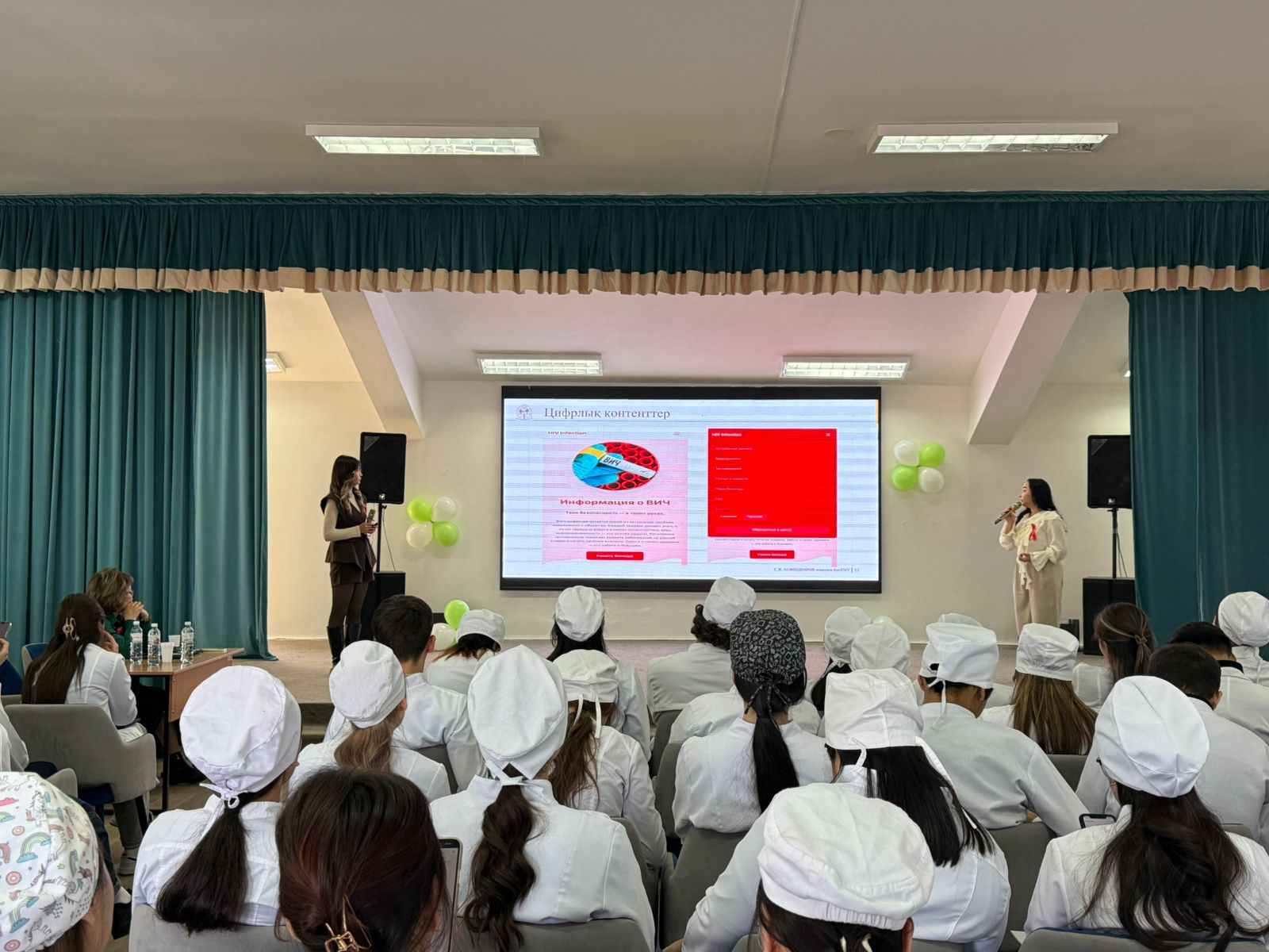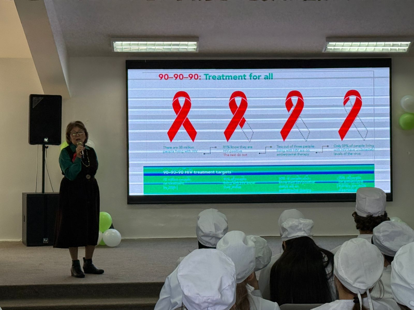 “At the initiative of 3rd- and 4th-year students of the H. Dosmukhamedov School of Public Health, and within the framework of Sustainable Development Goal 3 — ‘Ensure healthy lives and promote well-being for all at all ages’ — a scientific and practical conference titled ‘AIDS: Yesterday, Today, Tomorrow’ was held on December 1, 2025, at the Almaty Medical College with the participation of 150 students.”