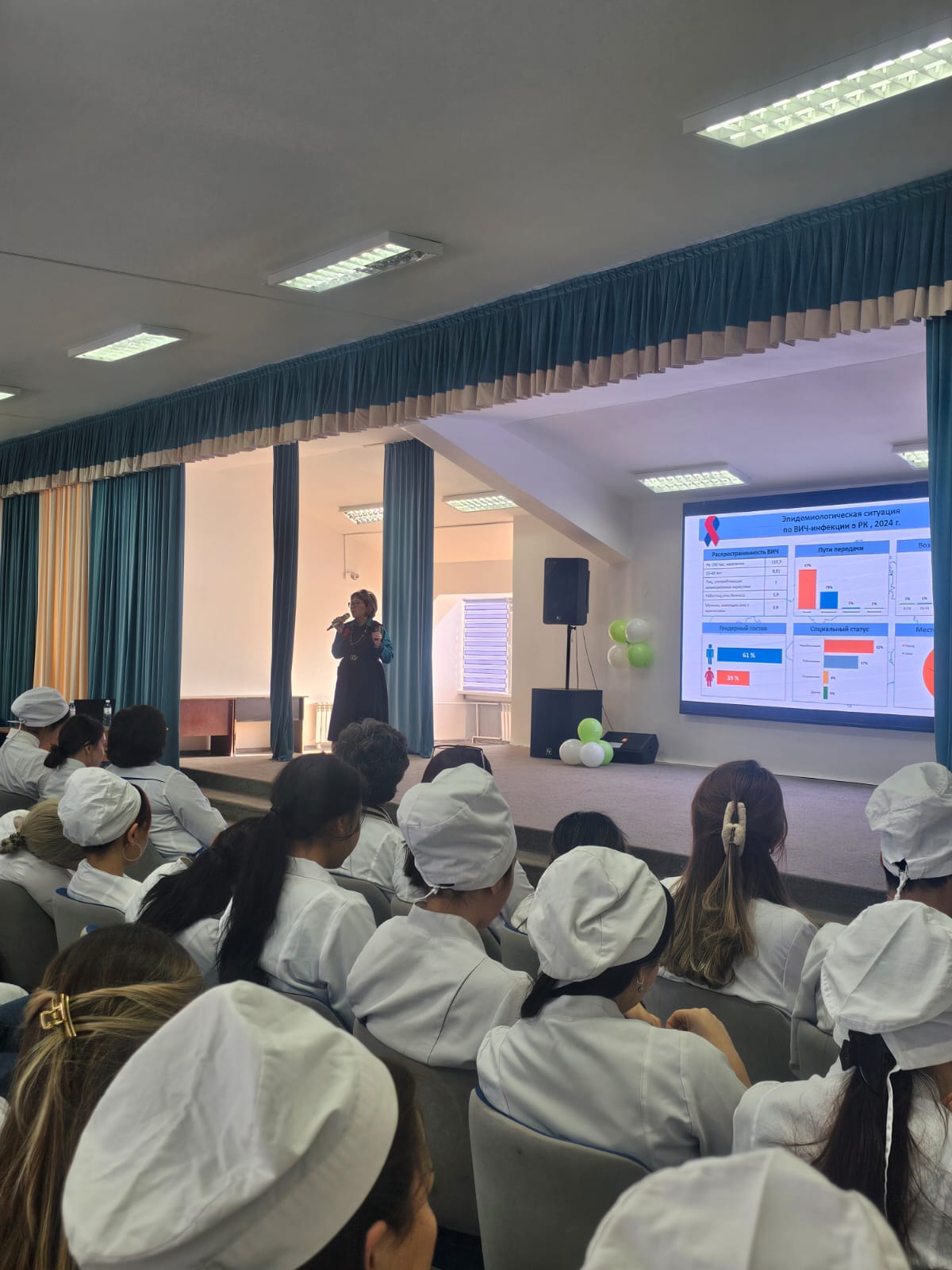 Significant contributions to the preparation and organization of the event were made by the faculty of the Department of Epidemiology with a Course on HIV Infection and Infection Control — G.S. Nugumanova, Zh.B. Beisenbinova, K.N. Alimkhanova, L.Zh. Alekesheva, L.Zh. Temirbayeva, as well as representatives of the Almaty Medical College — L.D. Alibekova, U.A. Tazhiyeva.