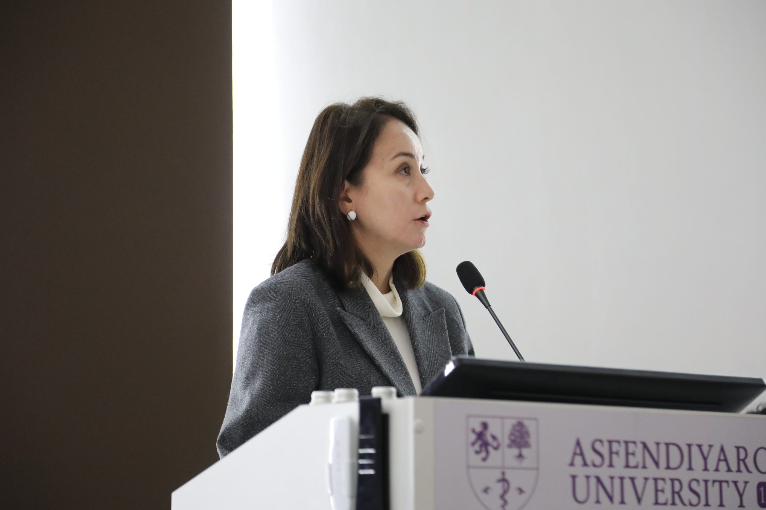 Opening remarks were made by the meeting moderators Saule Tleubergenovna Turuspekova, Head of the Department of Neurologic diseases at KazNMU; Botagoz Bineshovna Dzharbusynova, Head of the Department of Psychiatry and Narcology named after G.I. Zaltsman at KazNMU; and Anar Muratovna Fazylzhanova, Director of the A. Baitursynov Institute of Linguistics.