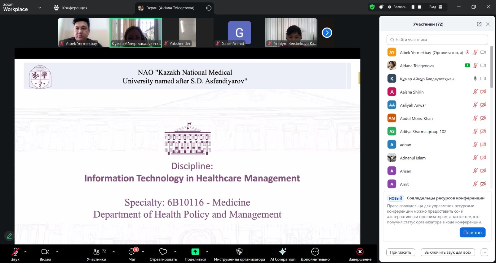 Students were informed about the distribution of credit hours, clinical training bases, and the format of final assessment. During the discussion, issues related to the formation of study groups, organization of work at clinical sites, and completion of practical assignments were addressed. The open meeting format enabled students to receive comprehensive answers and recommendations regarding course selection in accordance with their professional interests and future specialization.