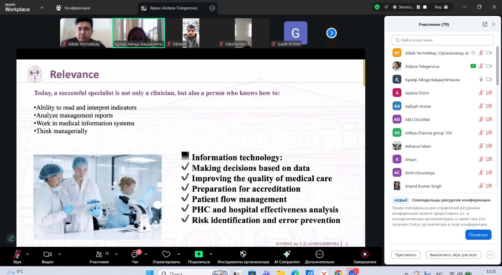 The organization of the online Elective Disciplines Fair confirmed the importance of systematic work on updating and improving educational programs, as well as the necessity of active interaction between the university’s structural divisions and students. We are confident that the selected elective disciplines will enable students and interns to deepen their professional knowledge, develop clinical and research competencies, strengthen practical skills, and successfully prepare for their future professional activities.