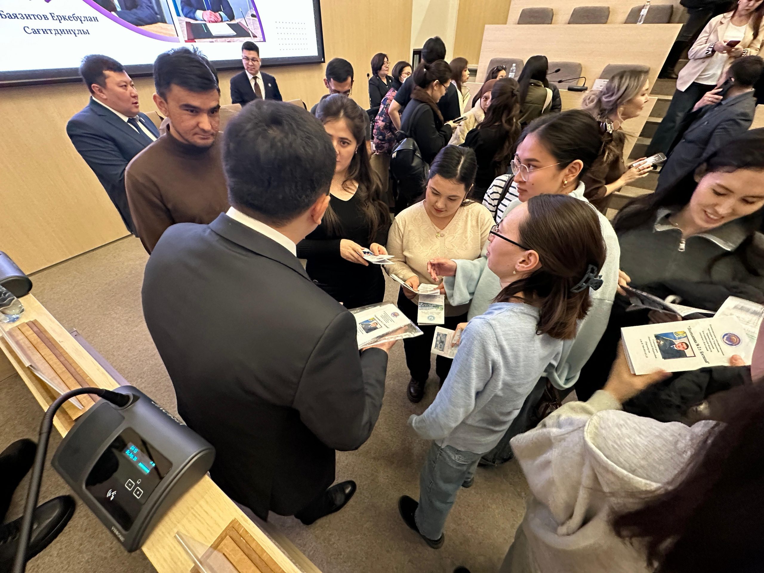 From the Kostanay Region, the Head of the Regional Healthcare Department, Yerkebulan Sagitdinovich Bayazitov, delivered a vivid and informative presentation. From the North Kazakhstan Region, Saken Omerserikovych Amrin, Head of the North Kazakhstan Regional Healthcare Department, also addressed the audience. In their speeches, they highlighted the regions’ staffing needs, available medical vacancies, working conditions, and measures of social support for young specialists.