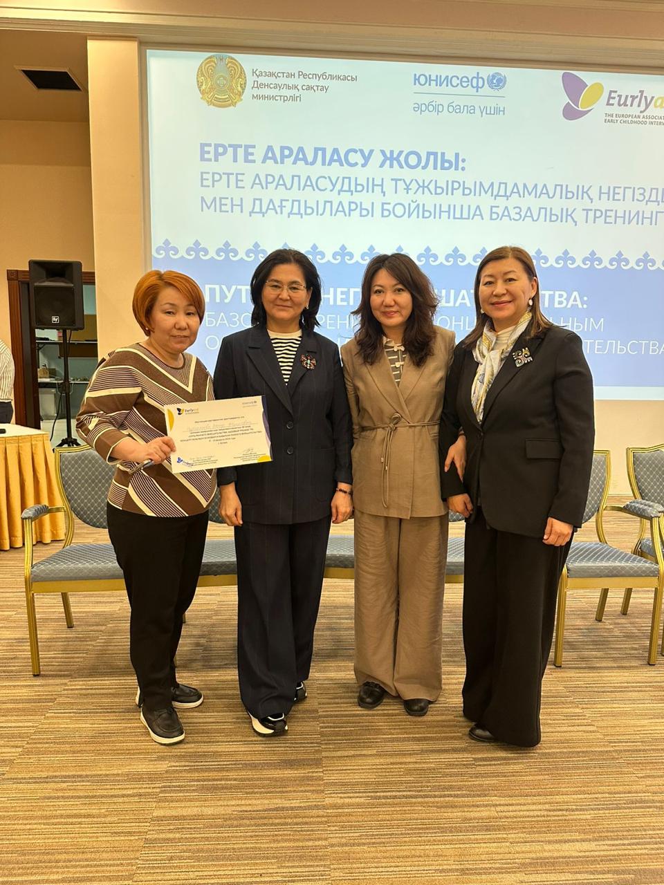 The Ministry of Health of the Republic of Kazakhstan, together with the leadership of the health and early childhood development programs of UNICEF (Kazakhstan), initiated training on the principles of the Guidelines for Monitoring Early Development (GMCD) and early intervention for pediatric specialists from all regions of the Republic of Kazakhstan with the participation of international experts. The staff of the School of Pediatrics, Head of the Department of Propaedeutics of Childhood Diseases Sagatbayeva N.A. and Professor of the Department of Outpatient Pediatrics Nurgalieva Zh.Zh., were involved in the training, with the awarding of certificates of international trainers on RMRR and early intervention programs. The GMCD certification courses were successfully conducted at the PHC Center in Astana on 26.01-31.01.2026, where N.A. Sagatbayeva and Zh.Zh. Nurgalieva participated as international trainers. The first participants of the GNCD training were PHC specialists from Astana — nursing home nurses, pediatricians, gps. Training on the conceptual foundations and skills of early intervention (EI), conducted by international experts from Eurlyaid (European Association on Early childhood intervention) 09.02-13.02.2026 The training programs were very intense and exciting. All participants showed keen interest and engagement. In January 2026, the Government of the Republic of Kazakhstan adopted the unified Concept «Children of Kazakhstan» for 2026-2030. The issues discussed during the training sessions were included in the Concept. It is planned to widely implement the RMRR and improve the RV in Kazakhstan as an interdepartmental program to improve the health and harmonious development of the child population.
