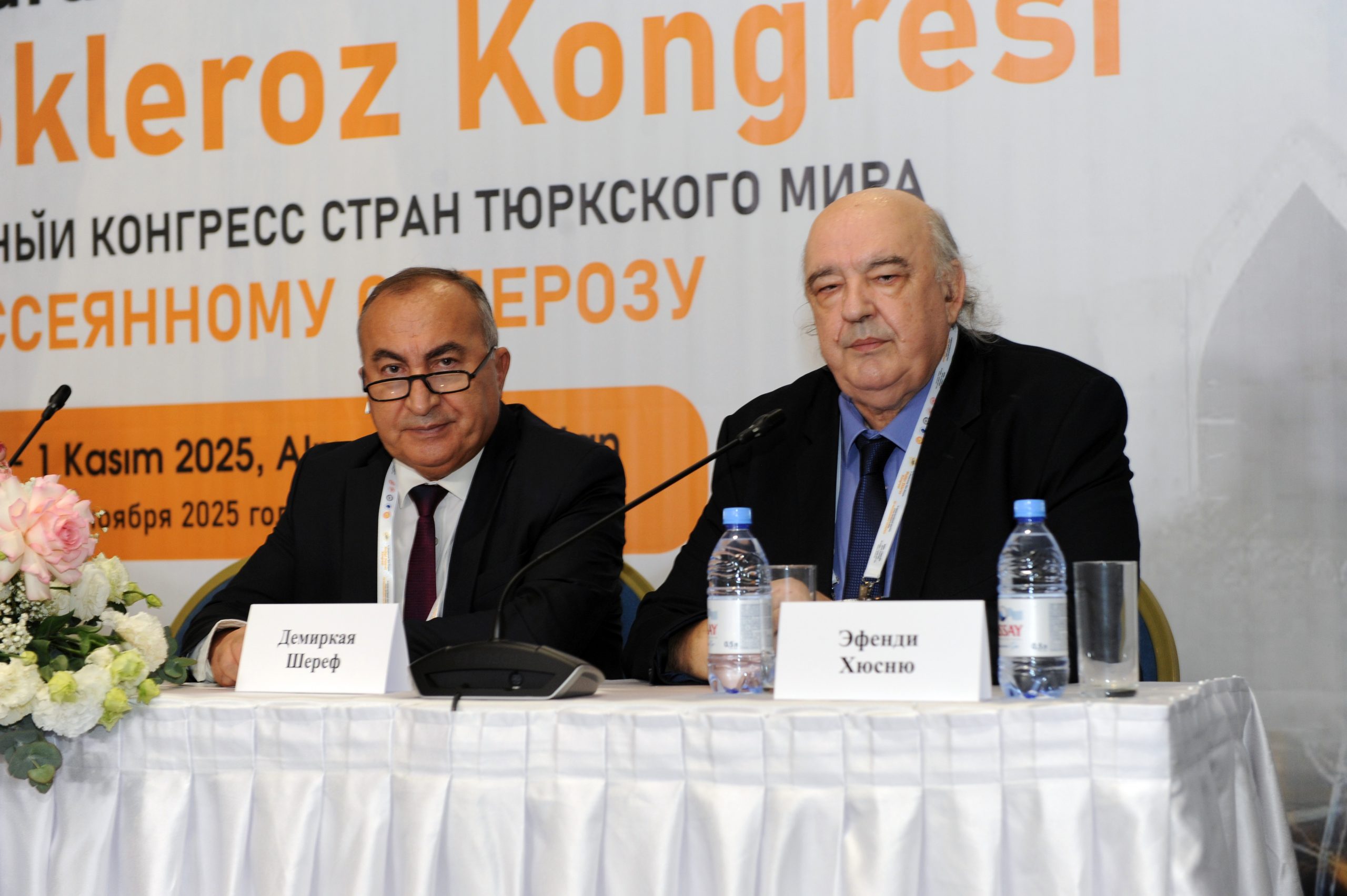 The main initiators and organizers of the now traditional International Congress of Turkic World Countries on Multiple Sclerosis were the Co-Chairs of the Congress — Prof. Dr. Şeref Demirkaya, Prof. Dr. Hüsnü Efendi, President of the Association of Neurologists of the Republic of Kazakhstan, Professor Nurguzhayev E.S., Head of the Department of Nervous Diseases of Asfendiyarov Kazakh National Medical University (KazNMU) Turuspekova S.T., and the Scientific Secretary of the Congress, Director of the Eurasian Center for Health and Social Sciences at the University of Health Sciences, Istanbul, Turkey — Dr. Aynur Feyzioglu.