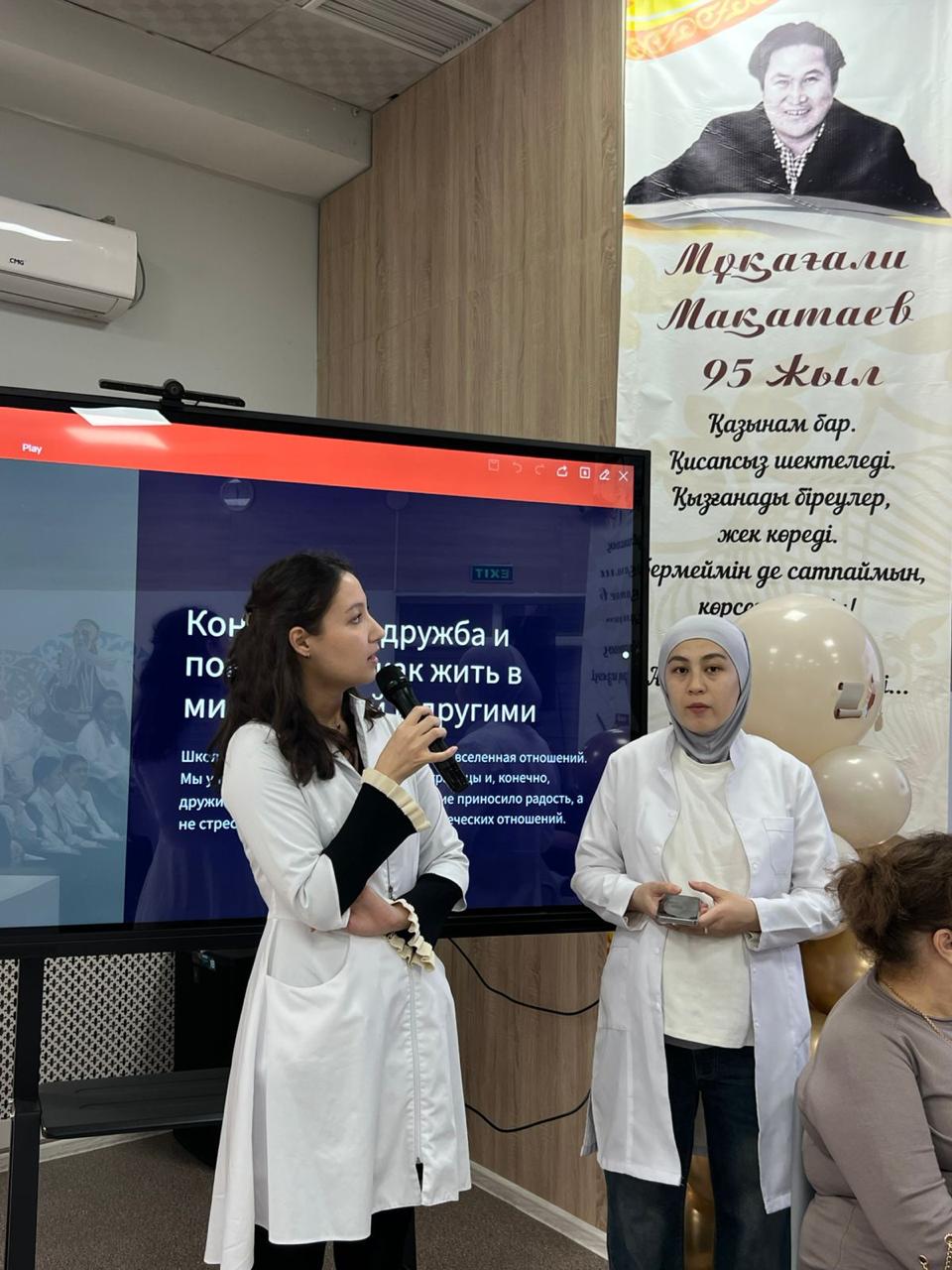 Іс-шараны профессор Ж.Ж. ұйымдастырды. Нұрғалиева, С.Д. Асфендияров атындағы Қазақ ұлттық медицина университетінің амбулаториялық педиатрия кафедрасының доценті, педиатрия мамандығы бойынша 24P-002 тобының резидент студенттерімен (Камиля Гулиева, Гүлназ Халитова) және педиатрия мектебінің P20-002 тобының интерндерімен (Махсұт Ақбота Мәдіқызы, Назерке Саматова) бірге қатысты. Тәрбие сағатында сұрақ-жауап сессиясы өтті: студенттер белсенді түрде сұрақтар қойды, болашақ дәрігерлер жан-жақты жауаптар берді. Іс-шара барлық жастағы адамдардың салауатты өмір сүруін қамтамасыз етуге және әл-ауқатын жақсартуға бағытталған 3-ші Тұрақты даму мақсаты – «Денсаулық және әл-ауқат»-пен тікелей сәйкес келеді. Сондай-ақ, ол жастардың денсаулығын сақтау үшін қажетті білім мен дағдылармен хабардарлығын арттыру және қаруландыру арқылы 4-ші Тұрақты даму мақсаты – «Сапалы білім»-ге үлес қосады.