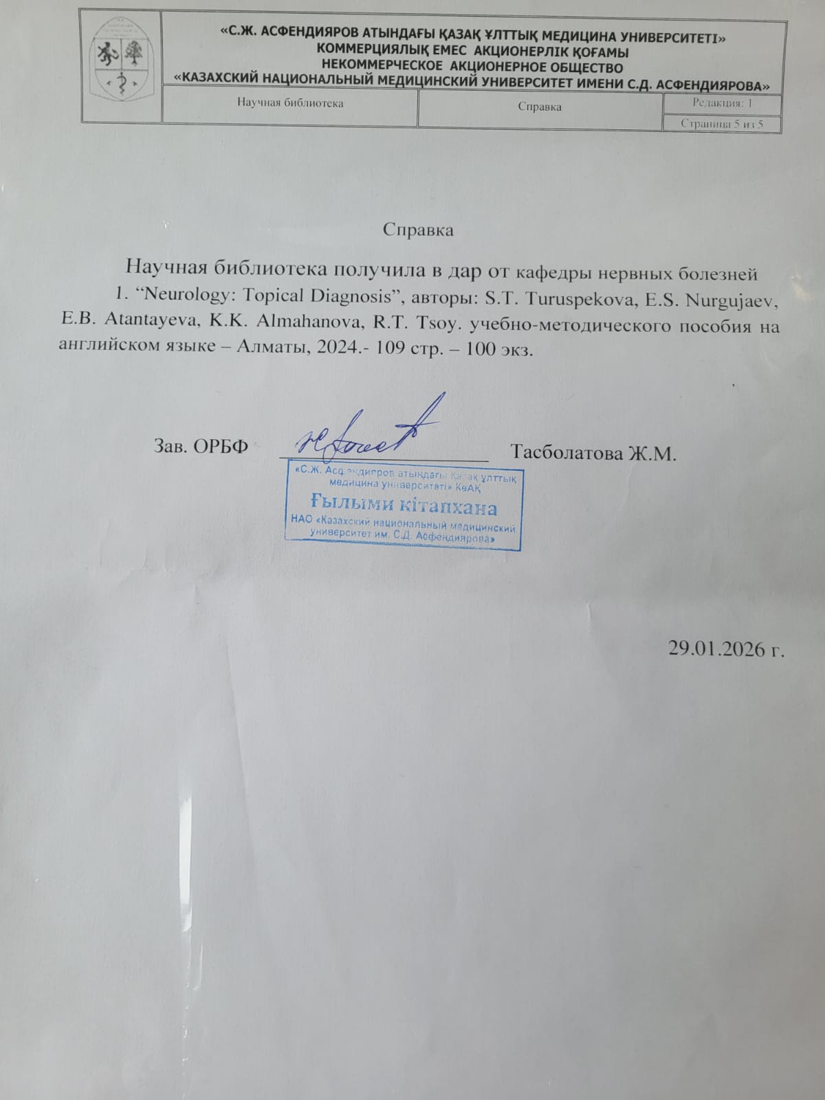 Кітапханаға сый