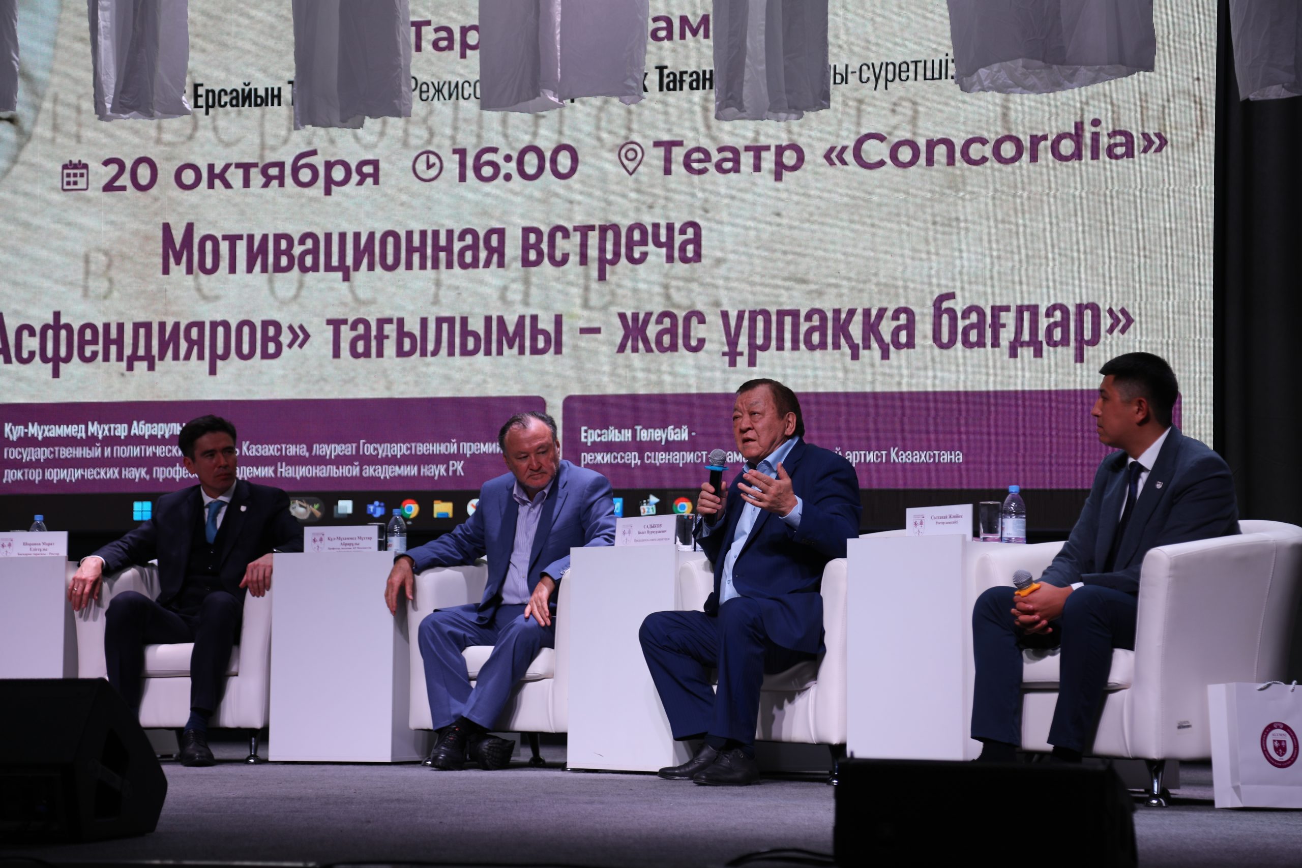 «Бүгін Конкордия сахнасында біз Санжар Асфендияровтың идеялары студенттеріміздің жеке таңдауы болып отырғанын көрдік: адал білім алу, кәсіби емдеу, адамдарға қызмет ету. Бұл – ұрпақтар сабақтастығының айқын көрінісі», – деп атап өтті ҚазҰМУ ректоры Марат Шоранов.