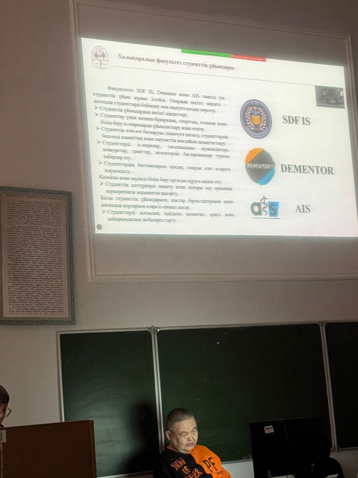 Аталған мәселе бойынша тәрбие жұмысы жөніндегі декан орынбасарлары баяндама жасады. Халықаралық факультеттен Төлегенова Шаттық, Стоматология мектебінен Алма Сайпудинқызы, Педиатрия мектебінен Вильнара Нурдаулетовна, Қоғамдық денсаулық сақтау мектебінен Бейсенбинова Жанат Бекмуханбетовна 2025–2026 оқу жылының 1-жартыжылдығы бойынша атқарылған тәрбие жұмыстарының есептік таныстырылымдарын ұсынды.