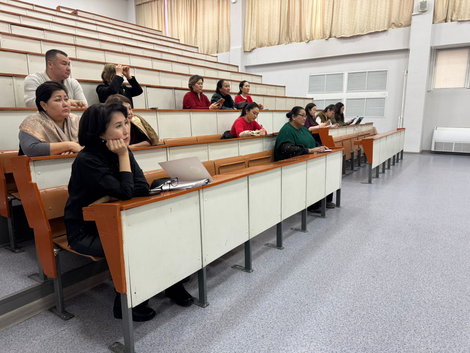 Семинарды Коммуникативті дағдылар кафедрасының профессор ассистенттері Кудайбергенова Айжан Жаканбаевна және Жаканова Тоты Аманкасовна өткізді. Семинар барысында тәлімгерлердің коммуникативті құзыреттілігін арттыру, студенттермен тиімді жұмыс жүргізу және суицидтің алдын алу бағытындағы тәжірибелер талқыланды.