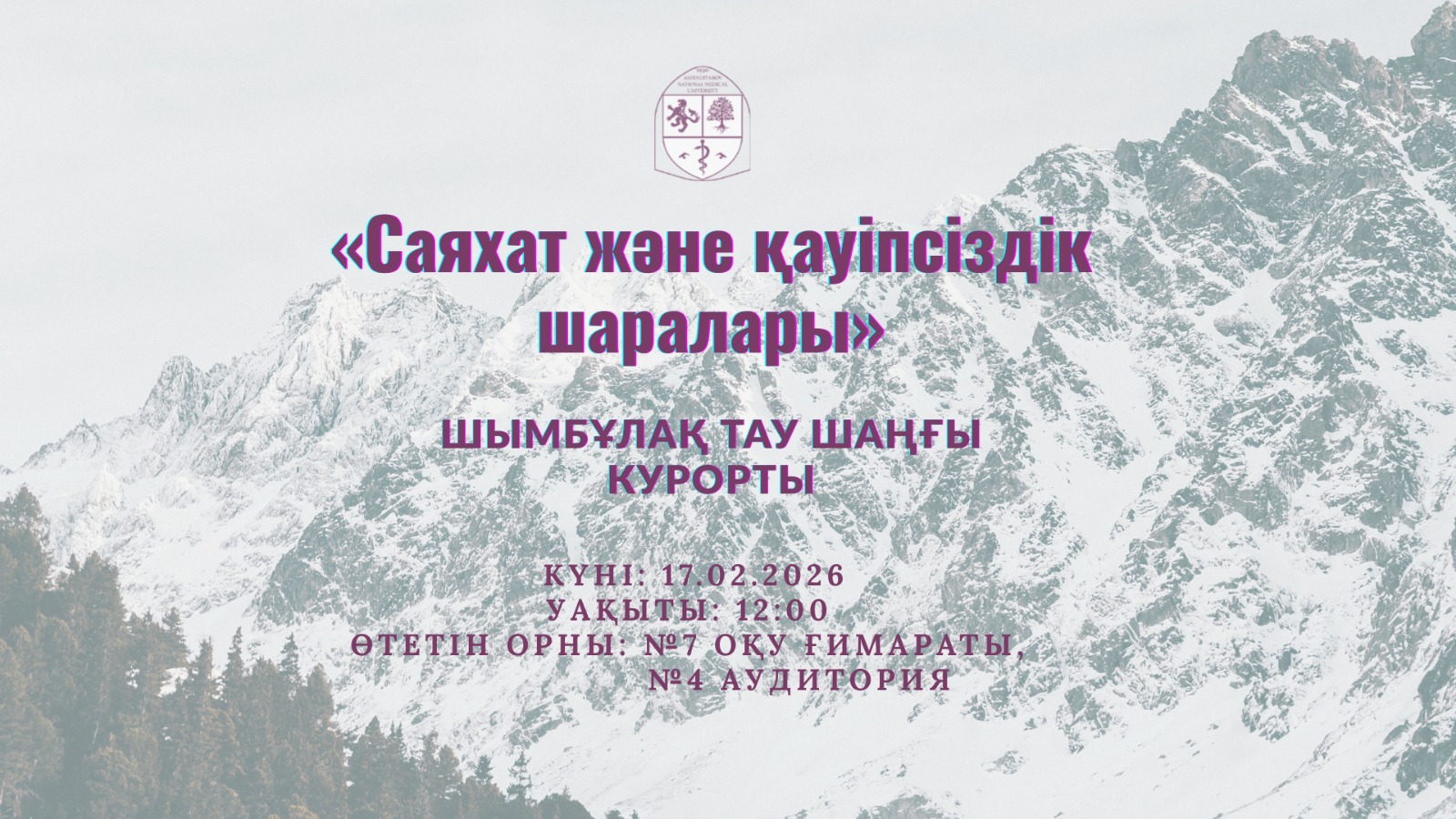 Білім алушыларды дамыту және қолдау департаментінің кешенді жоспары негізінде 2026 жылдың 17 ақпан күні сағат 12:00-де №7 оқу ғимаратының №4 аудиториясында «Шымбұлақ тау-шаңғы курорты саяхатына дайындық және қауіпсіздік шаралары туралы» профилактикалық кездесу өтеді.