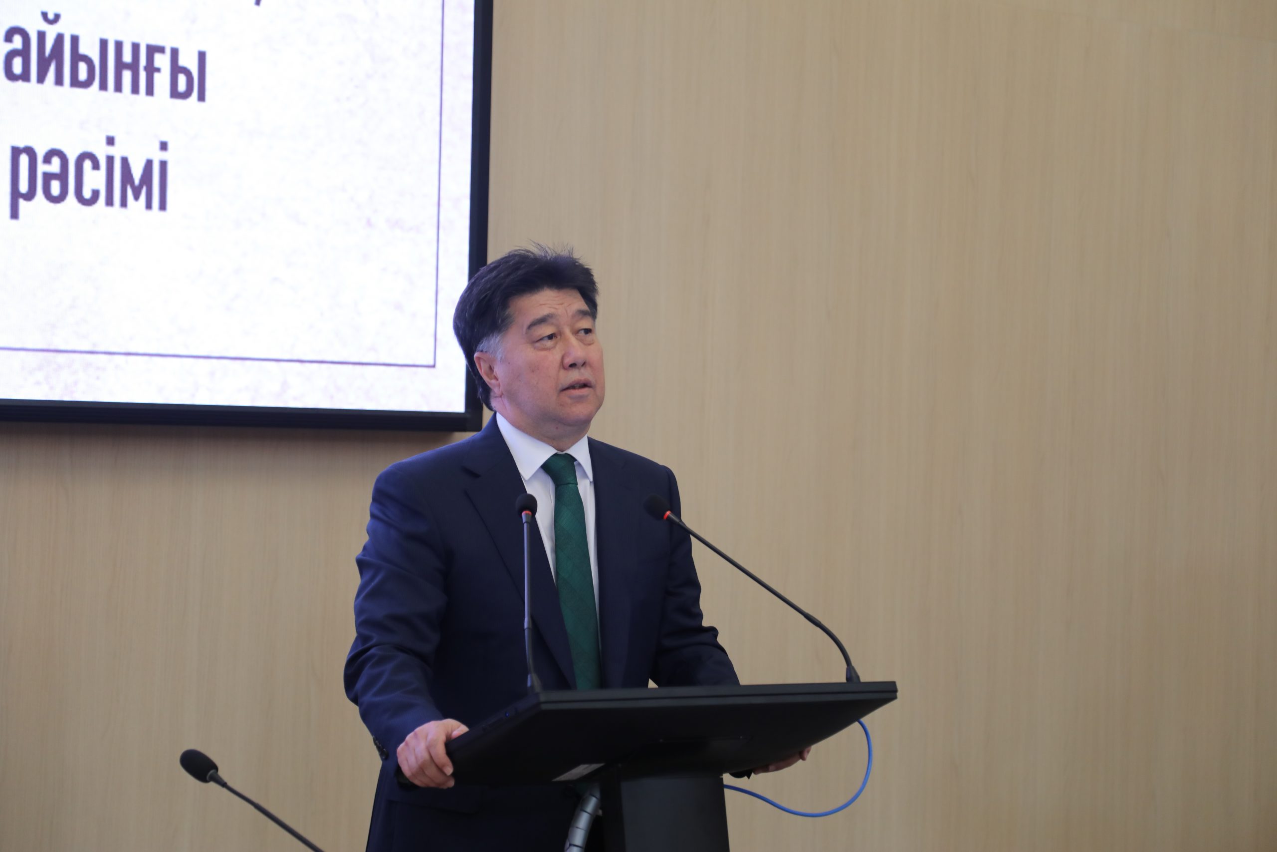 ҚазҰМУ ректоры Марат Шоранов өз сөзінде жаңартылған залдың символдық маңызына тоқталды: