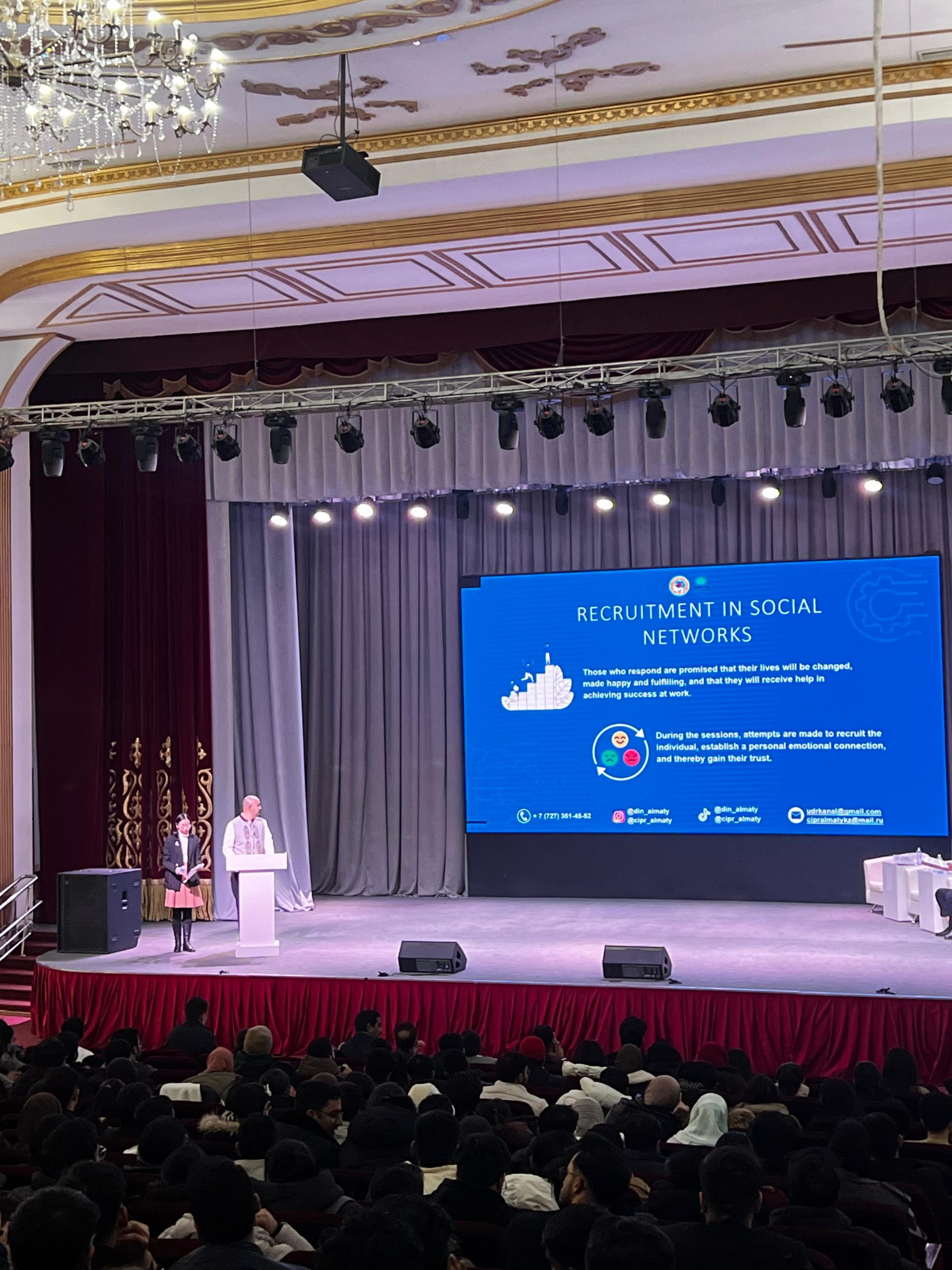 Кездесу барысында лектор діни радикализм мен экстремизмнің қауіптілігі, олардың алдын алу жолдары, заң алдындағы жауапкершілік мәселелері туралы кеңінен түсіндіріп, студенттердің сұрақтарына жауап берді.