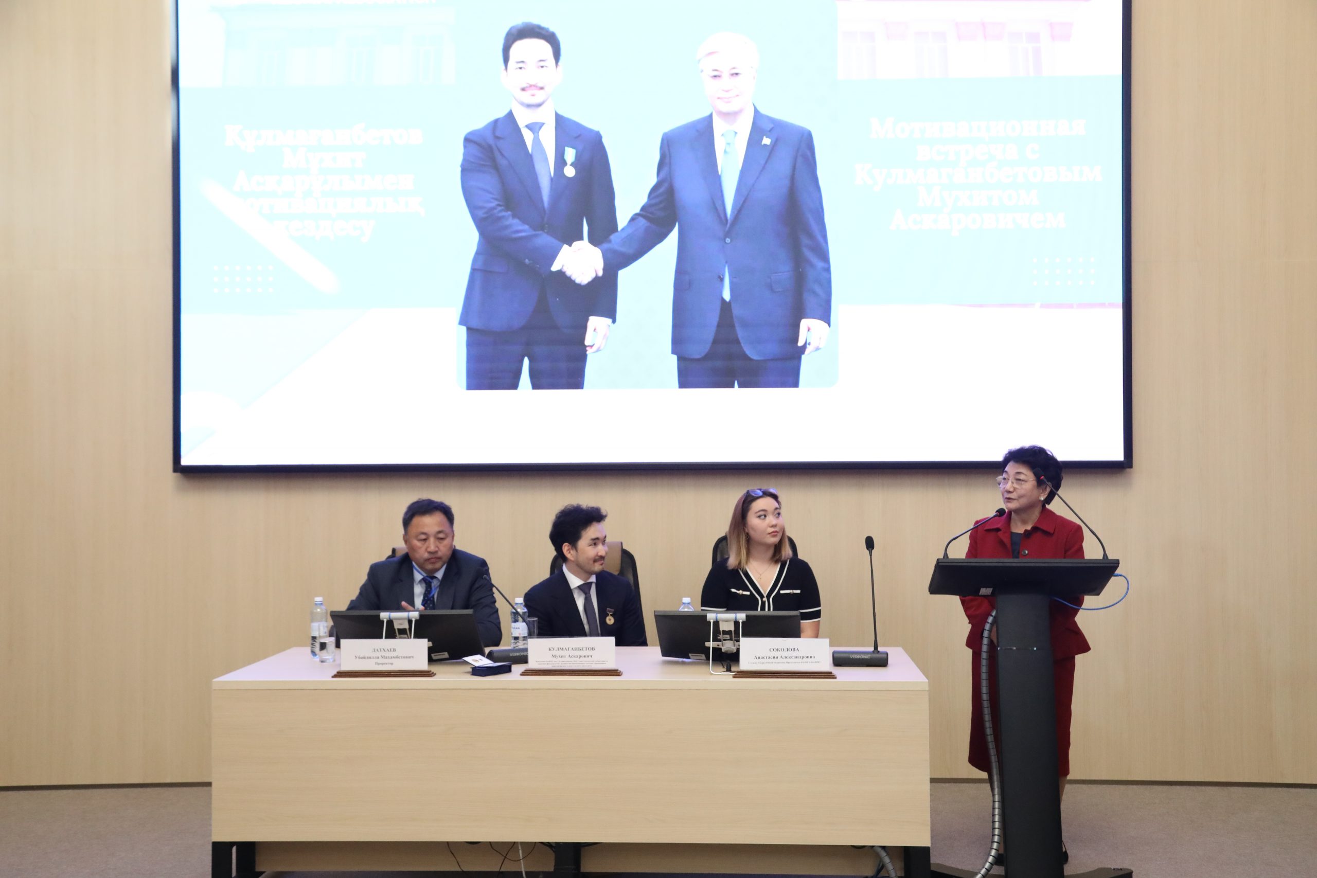 «Бір кездері мен де осы аудиторияларда отырған едім. Ол кезде ғылымға жол тым алыс көрінетін. Бірақ дәл осы ҚазҰМУ маған зерттеуші сияқты ойлануды үйретті», – деді Мұхит Құлмағанбетов.