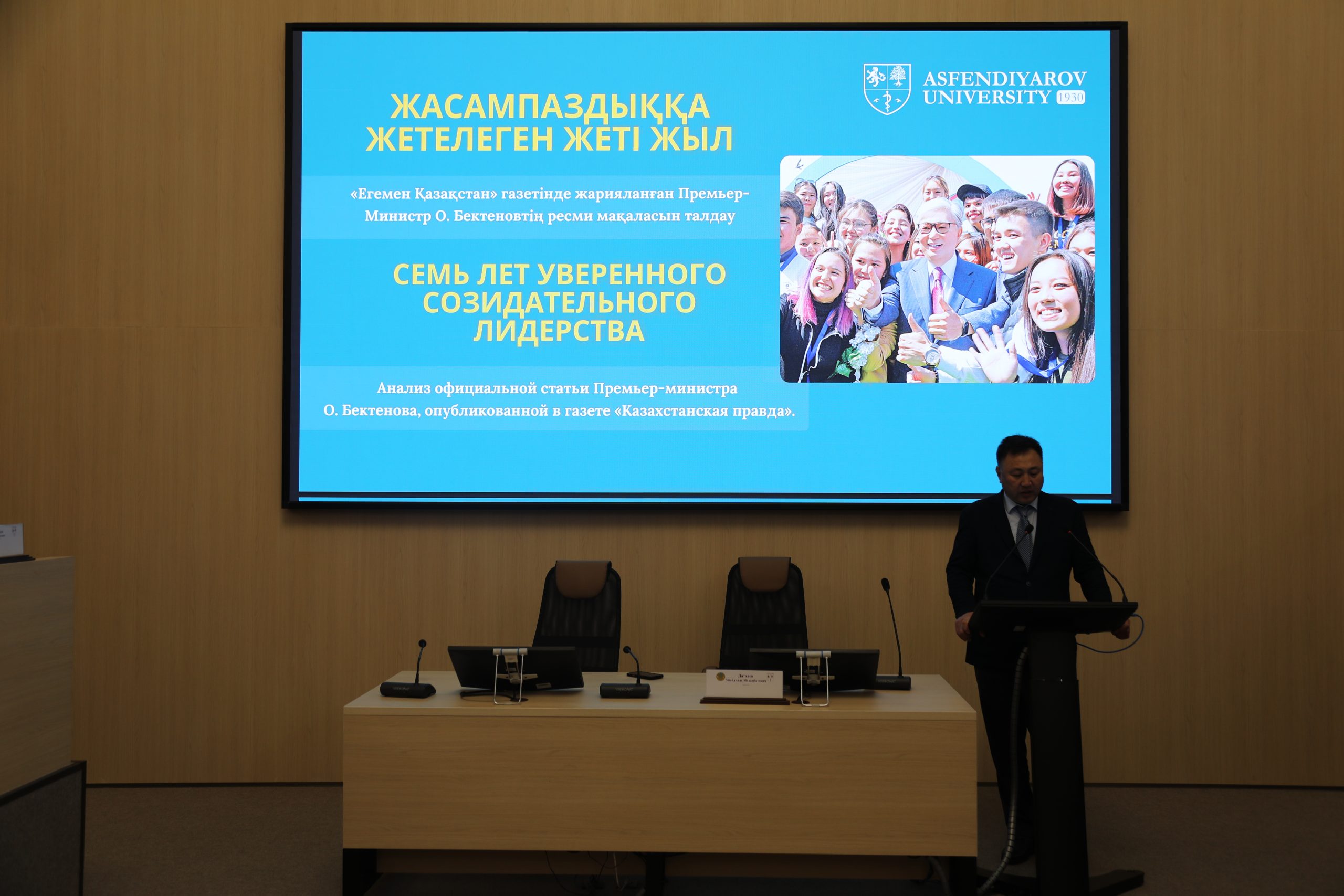 С.Ж. Асфендияров атындағы Қазақ ұлттық медицина университетінде Қазақстан Республикасының Премьер-Министрі Олжас Бектеновтің саяси мақаласын талқылауға арналған кеңейтілген отырыс өтті. Қасым-Жомарт Тоқаевтың президенттік жеті жылын терең талдау тақырыбында өткен іс-шараға университет басшылығы, көрнекті ғалымдар, профессорлар және ұлттық денсаулық сақтау жүйесінің ардагерлері қатысты.