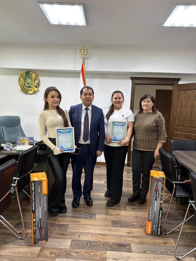 Бүгін, 2026 жылғы 16 қаңтарда Алматы қаласы ҚДСБ ШЖҚ «Жедел медициналық жәрдем қызметінің» бас дәрігері Тойбеков Арман Серікбайұлы 3/1 бригада фельдшері, «Жалпы медицина» факультетінің 7 курс интерні Кеңесбаева Тұрсынай Арманқызына және «Жедел медициналық жәрдем дәрігерінің көмекшісі» ретінде кәсіптік тәжірибеден өтіп жүрген «Жалпы медицина» факультетінің 5 курс студенті Жұмаділ Әсия Оразқызына шақырту кезінде міндеттерін адал орындағаны және Facebook әлеуметтік желісінде әкімдікке жіберілген пациенттің ата-анасынан алған алғысы үшін Құрмет грамотасымен және бағалы сыйлықтарымен марапаттады. Пациенттің алғыс хаты Facebook парақшасында жарияланды.