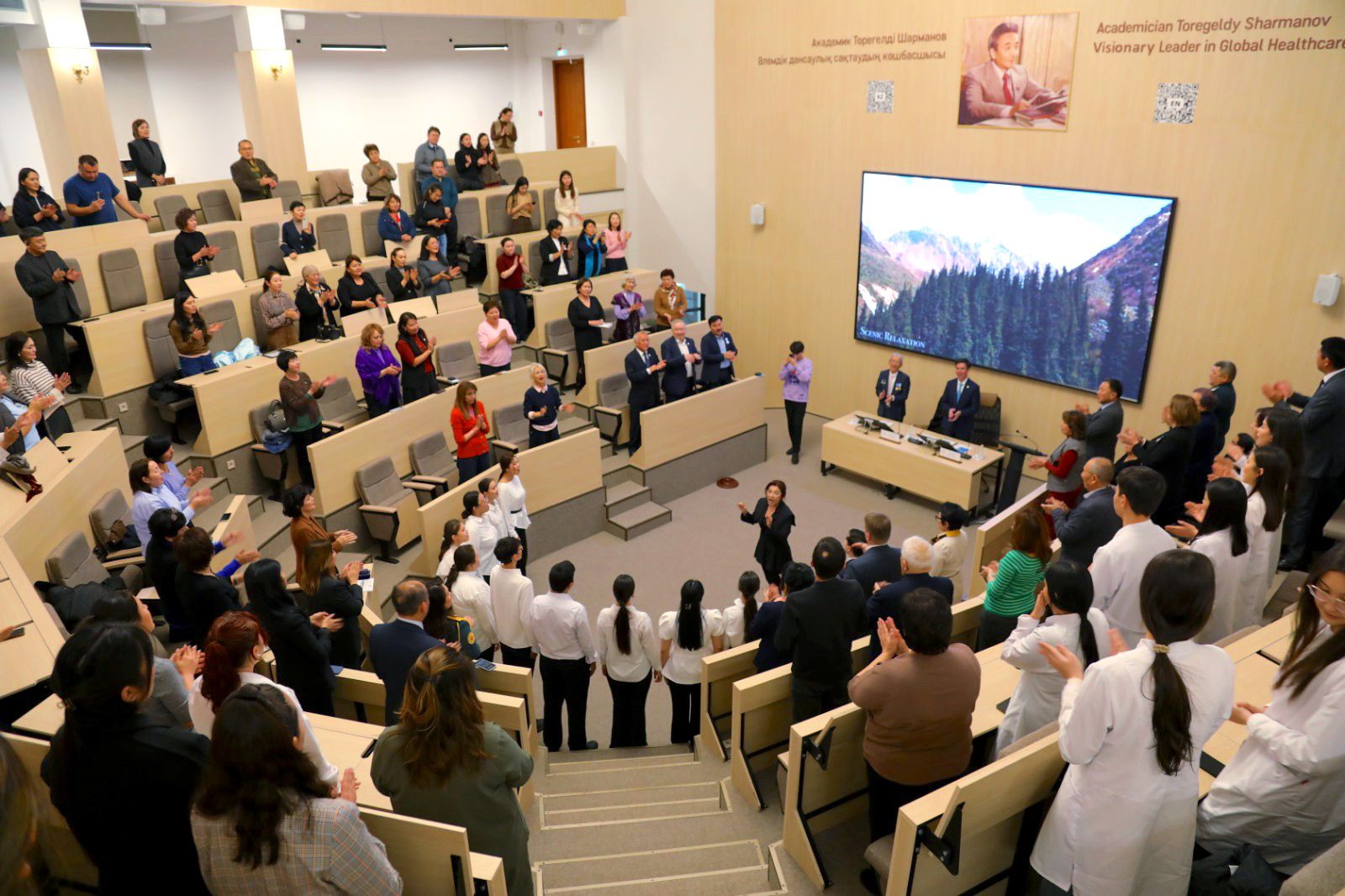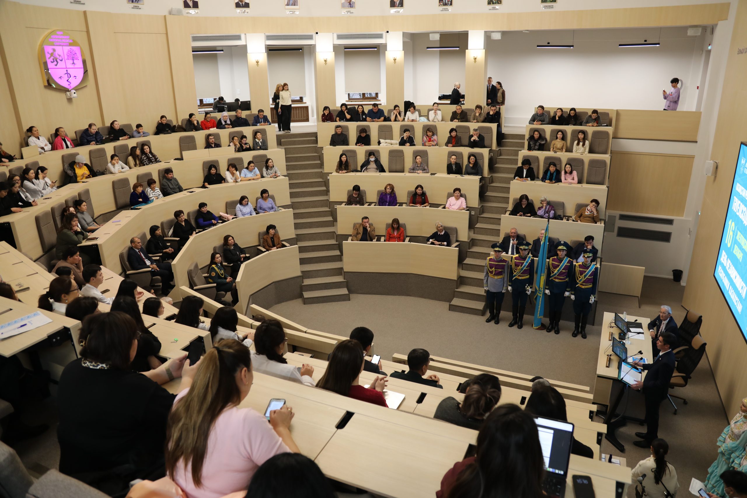 Академик Т. Шарманов атындағы Даңқ залында өткен іс-шараға профессор-оқытушылар құрамы, университет қызметкерлері мен студенттер қатысты. Салтанатты жиында білім беру, ғылым және клиникалық қызмет саласында көзге түскен қызметкерлер марапатталып, студенттер дайындаған әдеби-музыкалық композиция ұсынылды.