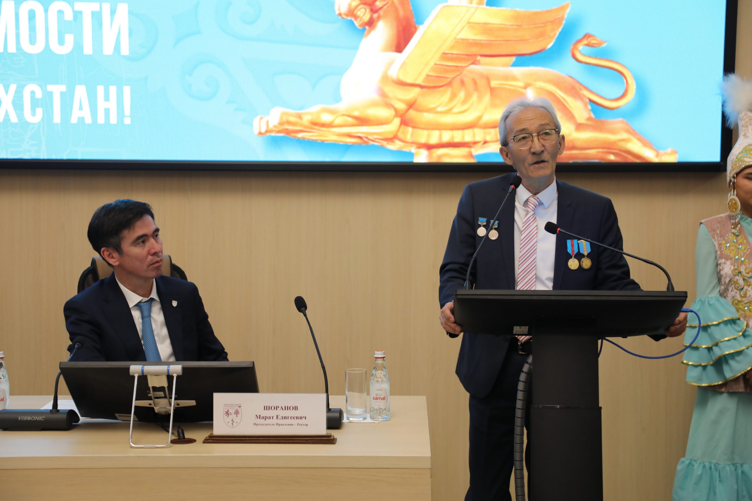Салтанатты бөлімде ҚазҰМУ ректоры Марат Шоранов сөз сөйлеп, Тәуелсіздіктің ел үшін ғана емес, жоғары білім мен медицина саласы үшін де стратегиялық мәнге ие екенін атап өтті. Ректор университеттің бүгінгі дамуы тәуелсіз ел жағдайында қалыптасқан академиялық еркіндік пен жауапкершілікке тікелей байланысты екенін айтты.