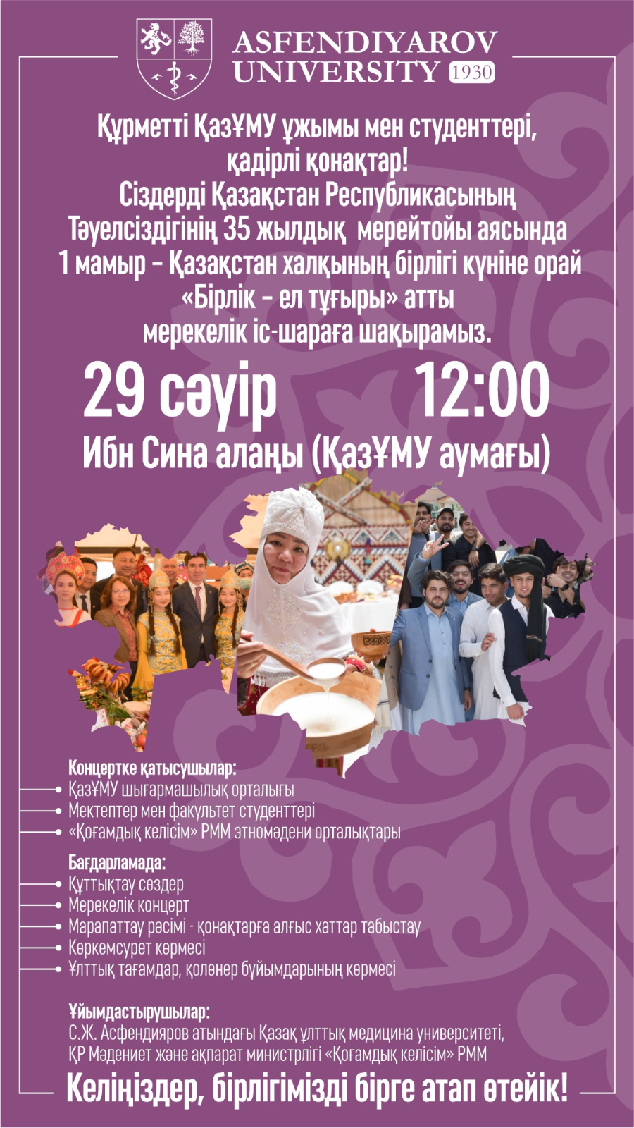 1 мамыр – Қазақстан халқының бірлігі күніне арналған «Бірлік – ел тұғыры» атты мерекелік іс-шара