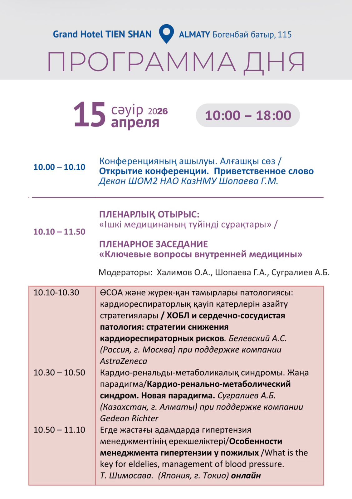 🎯 Цель конференции — объединение, профессиональное обучение и обмен опытом между казахстанскими и зарубежными специалистами в области диагностики, лечения и профилактики заболеваний внутренних органов.