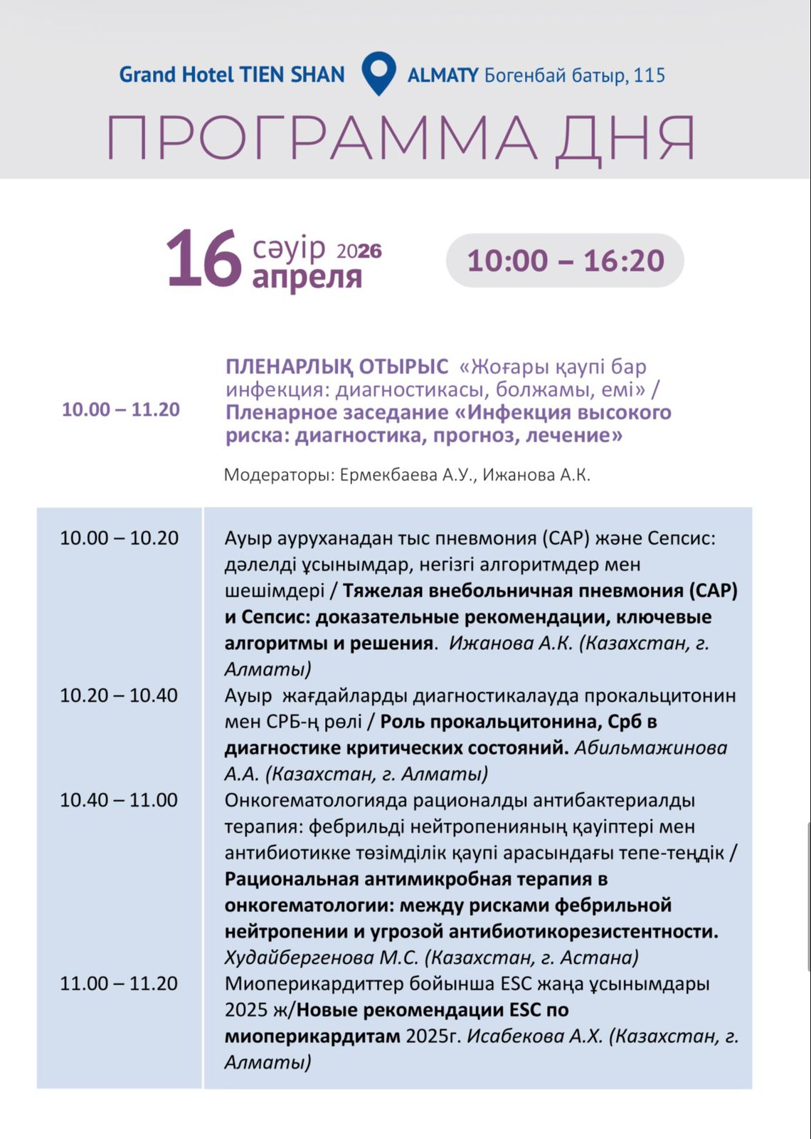 🔎 В программе конференции: кардиология, пульмонология, гастроэнтерология, ревматология, нефрология, эндокринология, гематология, тромбозы и гемостаз, неотложные состояния, антибиотикорезистентность, вакцинация.