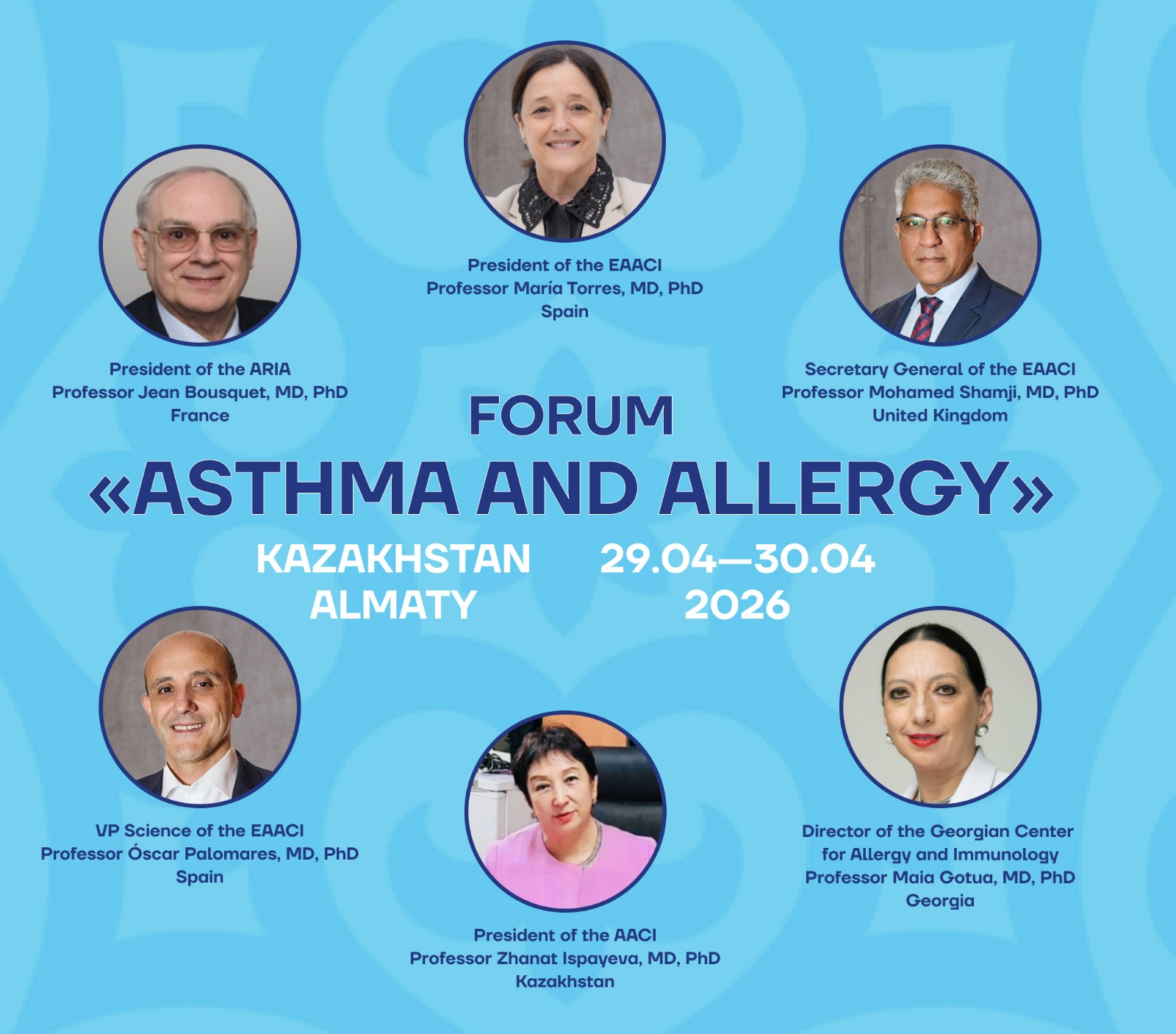 Ежегодный Национальный Казахстанский Международный Форум «Астма и аллергия» проходит под патронажем Европейской Академии Аллергологов и Клинических иммунологов — крупнейшее профессиональное мероприятие, объединяющее аллергологов-иммунологов, врачей смежных специальностей Республики Казахстан, признанное мировым научным сообществом,